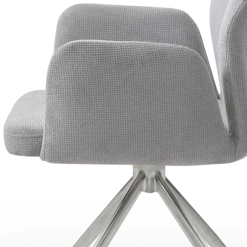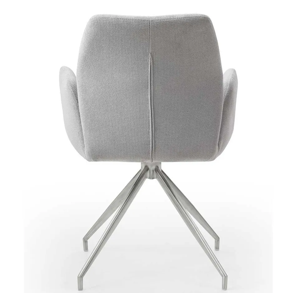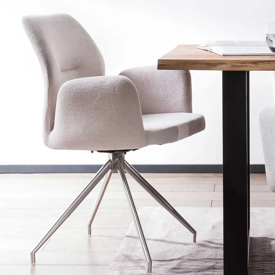 Ein besonderes Highlight der Stühle ist die praktische Drehfunktion: Um 180 Grad schwenkbar, ermöglichen sie eine flexible Bewegungsfreiheit am Tisch. So können Sie sich bequem zur Seite drehen, ohne den Stuhl verrücken zu müssen. Das stabile Vierfußgestell in Spiderform aus rostfreiem Edelstahl sorgt für eine sichere Basis und unterstreicht die moderne, industrielle Optik. Mit einer Belastbarkeit von bis zu 110 kg sind die Stühle zudem besonders robust.