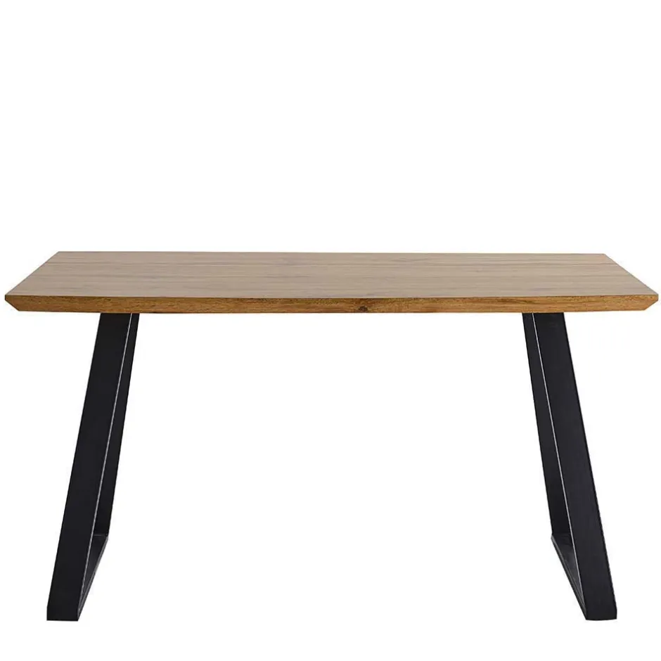 Ein massives Metallgestell in Trapezform verleiht dem Tisch Stabilität und visuelle Präsenz. Durch seine offene Konstruktion wirkt der Tisch modern und luftig, bleibt jedoch standhaft und belastbar – ein idealer Begleiter für tägliche Nutzung, Familientreffen oder festliche Anlässe.