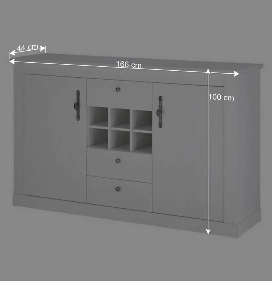 Die großzügigen Maße dieser Esszimmermöbel machen sie zu einem Blickfang in jedem Raum. Die Buffetschrank-Vitrine misst 110x207x44 cm, das Sideboard 166x100x44 cm. Der Esstisch mit einer Größe von 160x76x90 cm bietet ausreichend Platz für Familie und Gäste, während das Wandboard mit einer Länge von 150 cm und einer Tiefe von 20 cm zusätzlichen Raum bietet, ohne zu viel Platz einzunehmen.