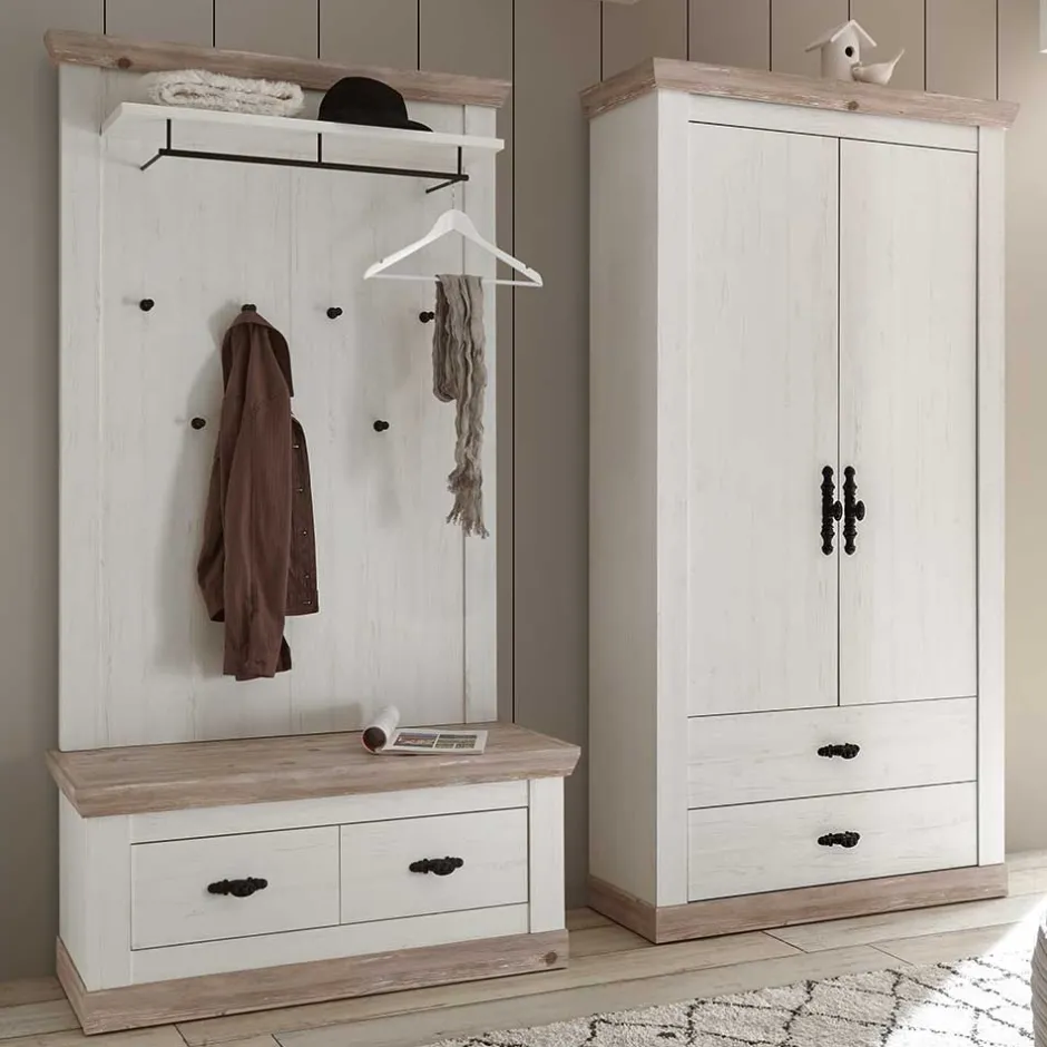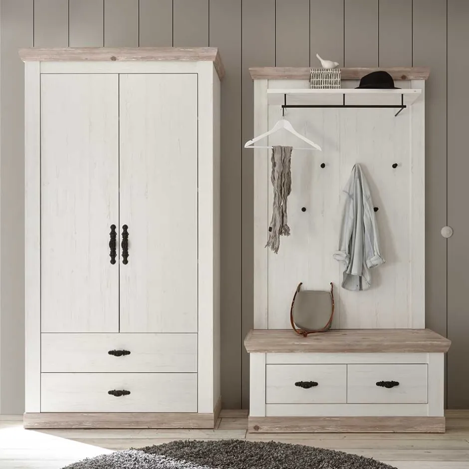- Harmonisches Garderoben Set in Weiß und Pinie verwittert