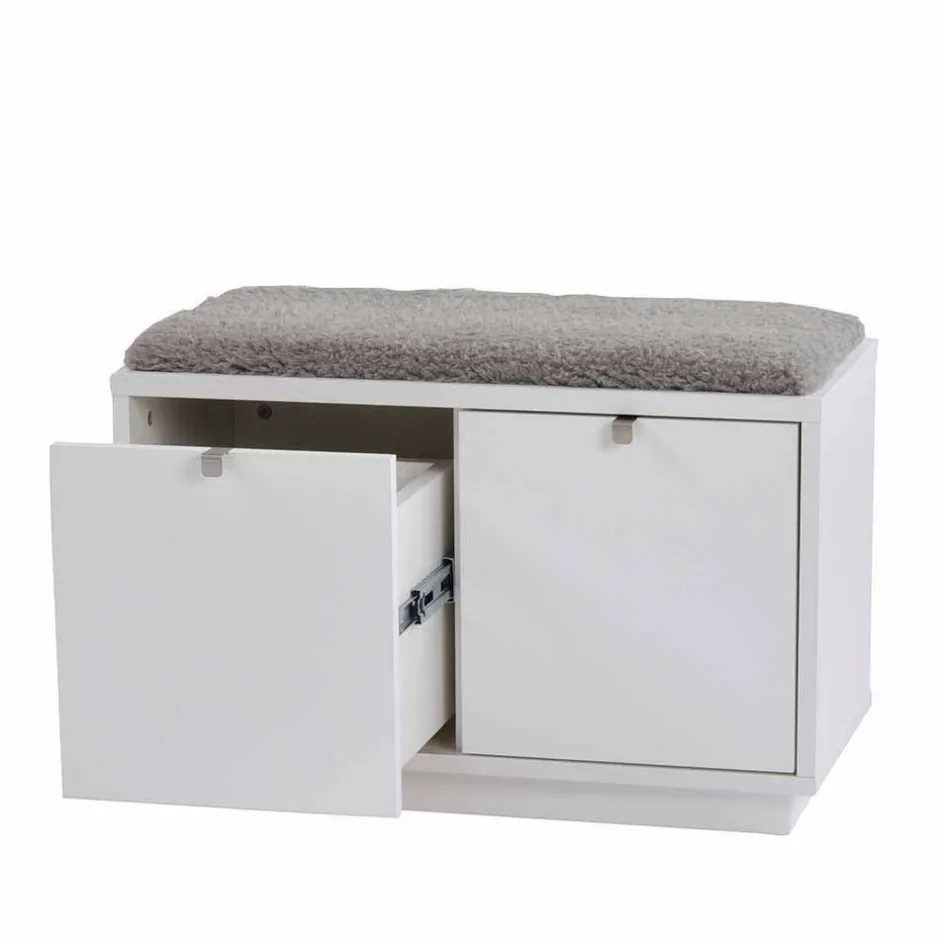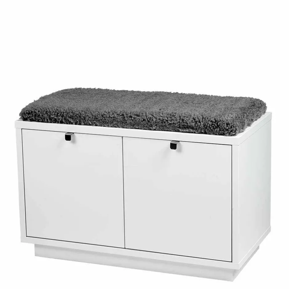 - Schnörkellose Garderobenbank in Weiß und Grau
