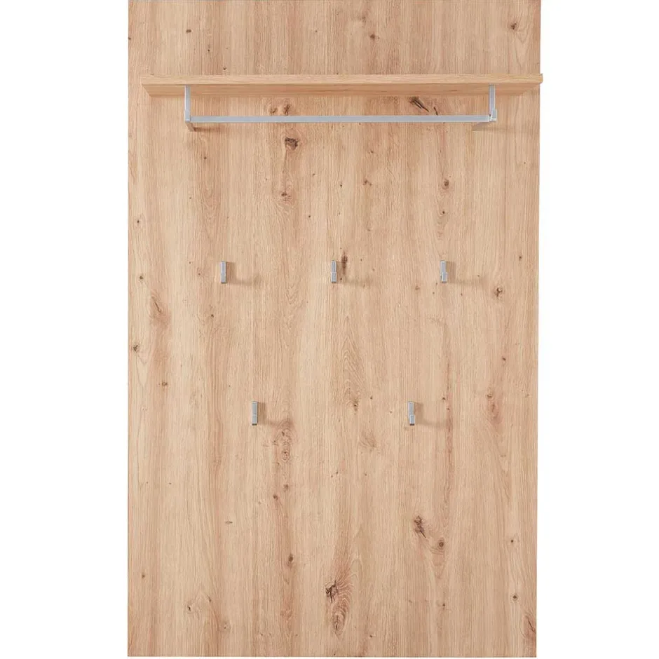 Garderobenpaneel „Zelio“ vereint modernes Design und praktische Funktionalität. Mit seiner zeitgemäßen Ästhetik in Wildeichefarben bringt es Wärme und Eleganz in jeden Eingangsbereich. Das dezente Design fügt sich harmonisch in verschiedenste Einrichtungsstile ein und schafft eine einladende Atmosphäre.