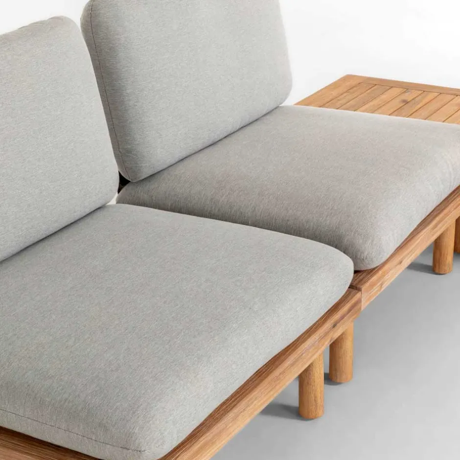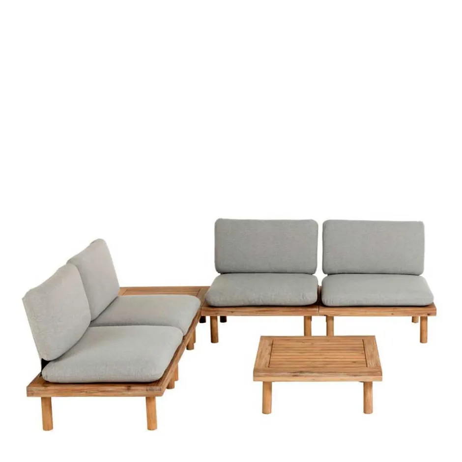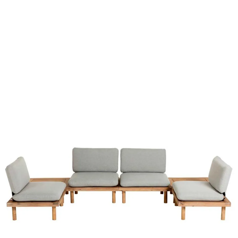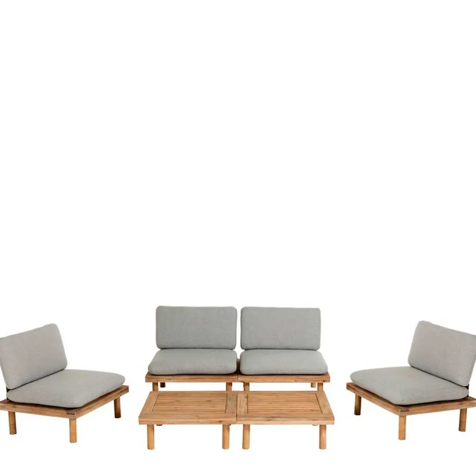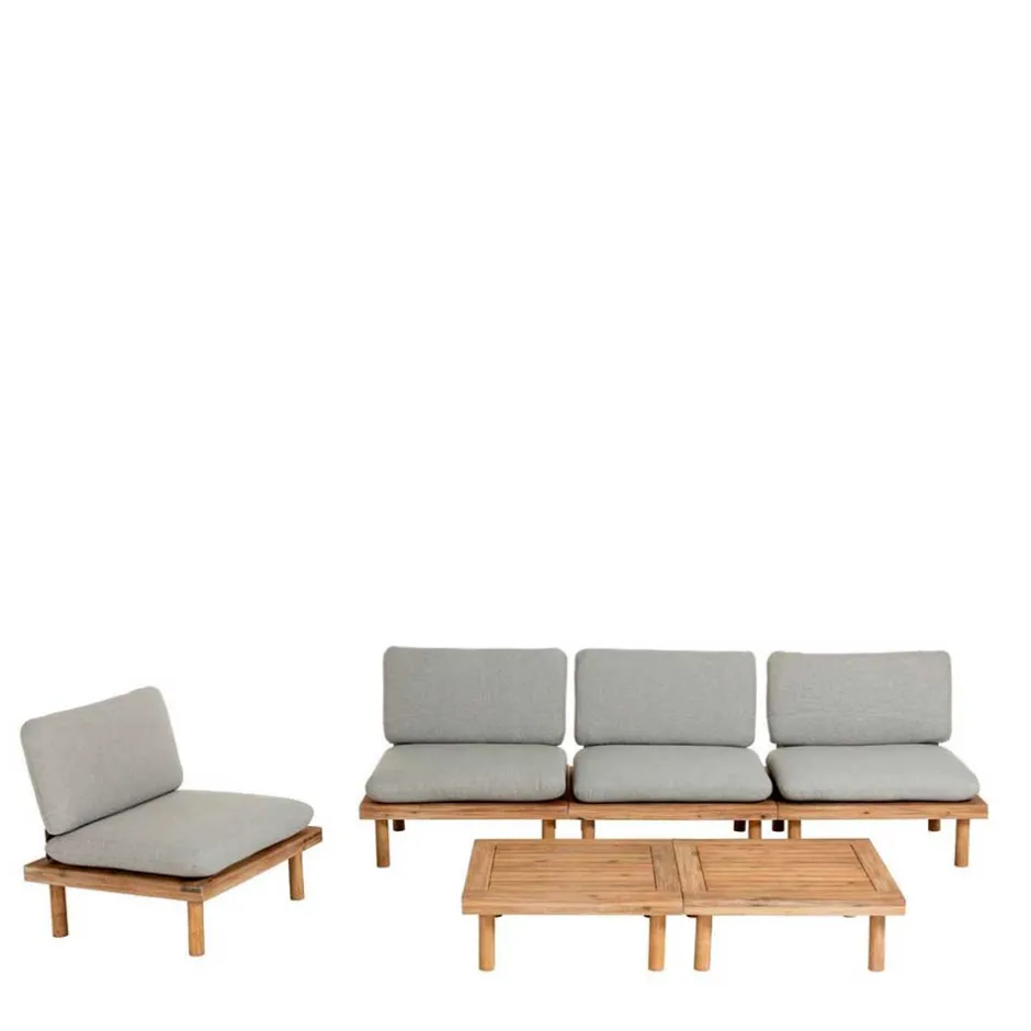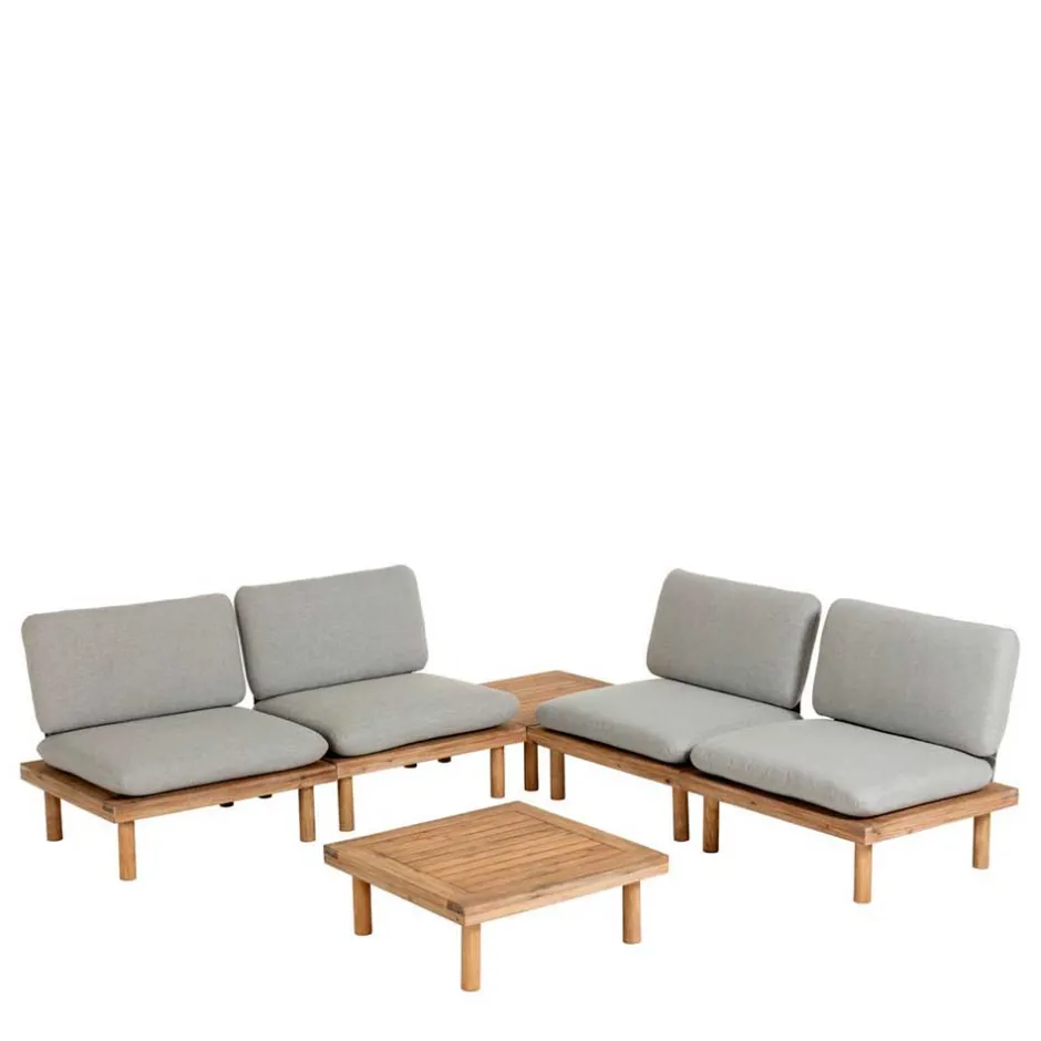 - Formvollendete Lounge Sitzgruppe in Akazie und Hellgrau