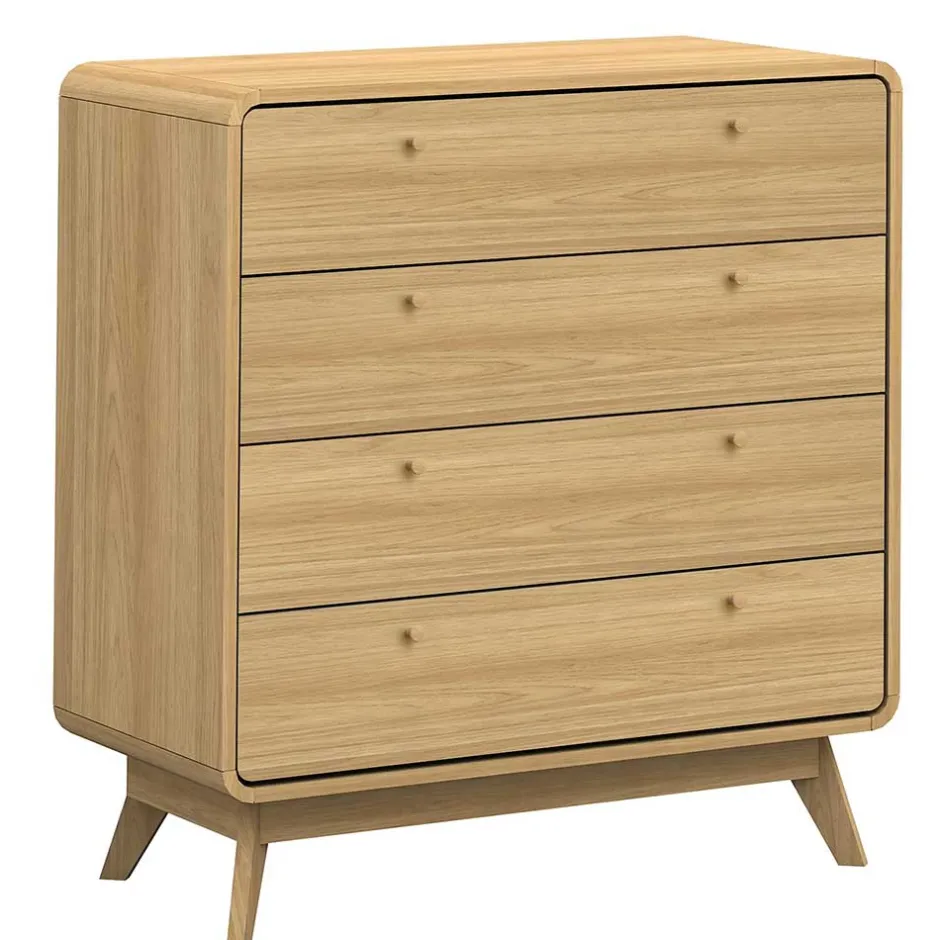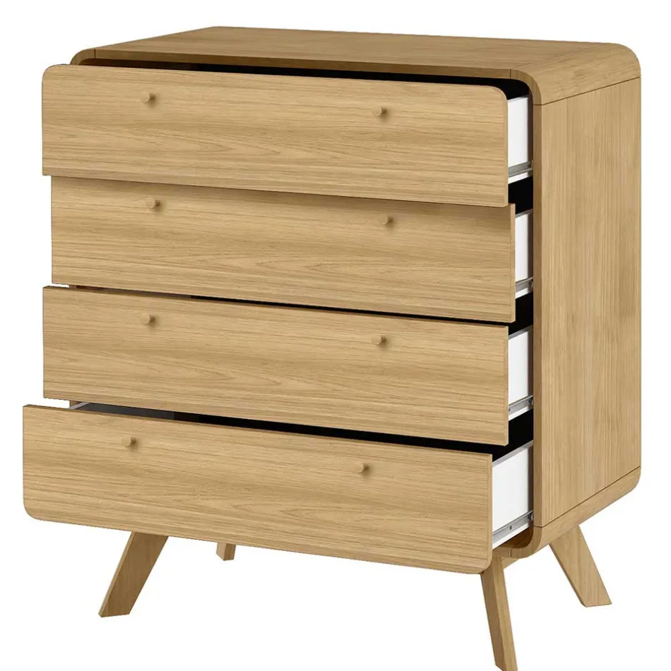 Das standfeste Untergestell aus MDF mit leicht nach außen geneigten Füßen sorgt nicht nur für einen sicheren Stand, sondern auch für eine ansprechende Optik. Dank der detaillierten Montageanleitung ist die Kommode leicht zu montieren, sodass Sie ohne großen Aufwand einen Hauch von Skandinavien in Ihr Zuhause bringen können.