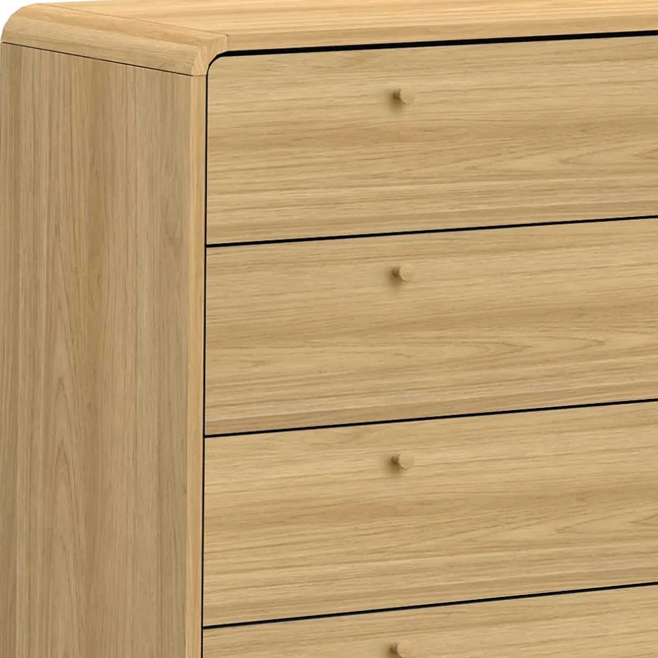 Bei der Schubladenkommode „Sophiea“ legen wir großen Wert auf die Qualität von Material und Verarbeitung. Das Möbelstück präsentiert sich in einem harmonischen Look mit einem dezenten Farbkontrast, der in jedem Raum für eine warme und einladende Atmosphäre sorgt. Die formschön gerundeten Korpuskanten unterstreichen das ansprechende Design und verleihen der Kommode eine weiche, zugängliche Anmutung.