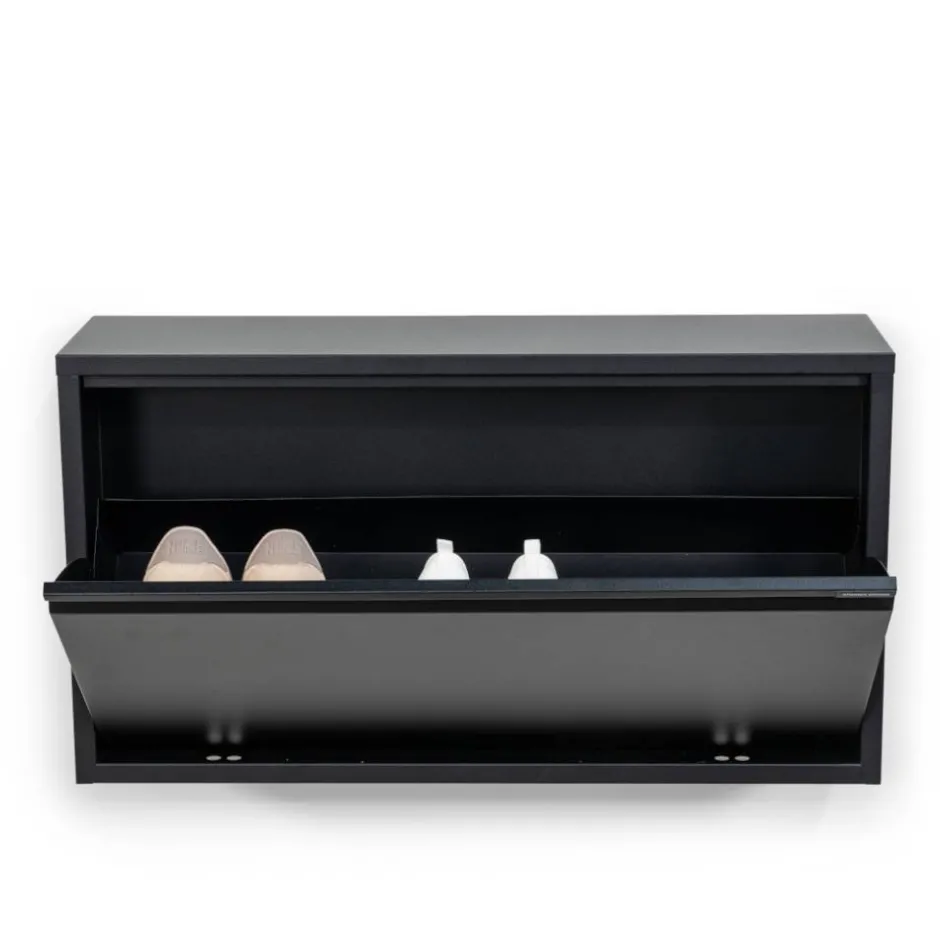 Der Schuhkipper „Kerala“ besteht aus robustem Stahl und überzeugt durch eine hochwertige Pulverbeschichtung, die für ihre Strapazierfähigkeit und einfache Pflege bekannt ist. Diese langlebige Beschichtung sorgt dafür, dass der Schuhkipper auch bei täglicher Nutzung seine Eleganz behält und leicht zu reinigen ist. Durch die Wandmontage wird zusätzlicher Bodenplatz gespart, was besonders in kleinen Räumen von Vorteil ist.