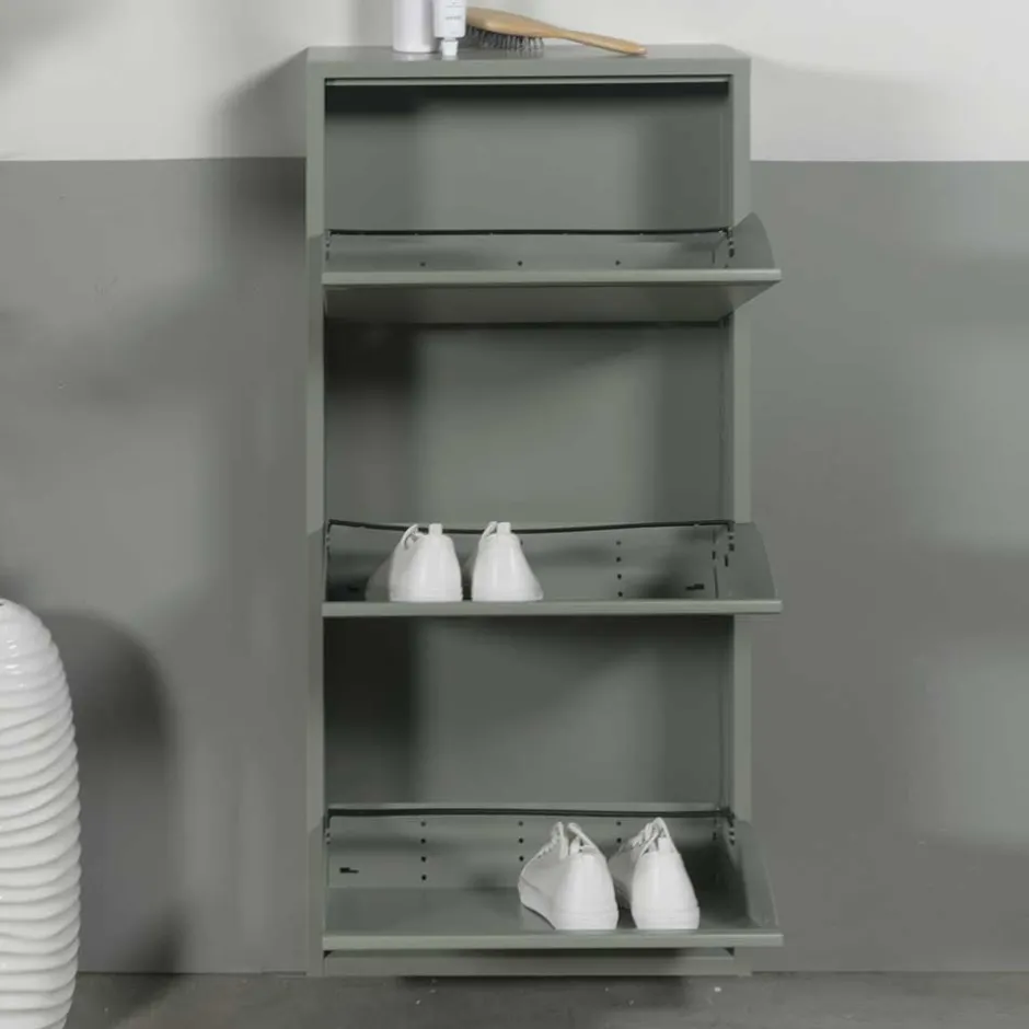 Ordnung beginnt im Eingangsbereich – und genau hier setzt der Schuhschrank Bombasti ein Zeichen. Mit seinem modernen Design, der eleganten Farbwahl in Graugrün und der hochwertigen Verarbeitung hebt er sich klar vom Durchschnitt ab. Wer beim Betreten der Wohnung Wert auf Stil und Struktur legt, wird mit diesem Möbelstück mehr als zufrieden sein. Bombasti ist nicht nur ein praktisches Aufbewahrungsmöbel, sondern ein echtes Designobjekt, das Funktion und Ästhetik perfekt miteinander verbindet.
