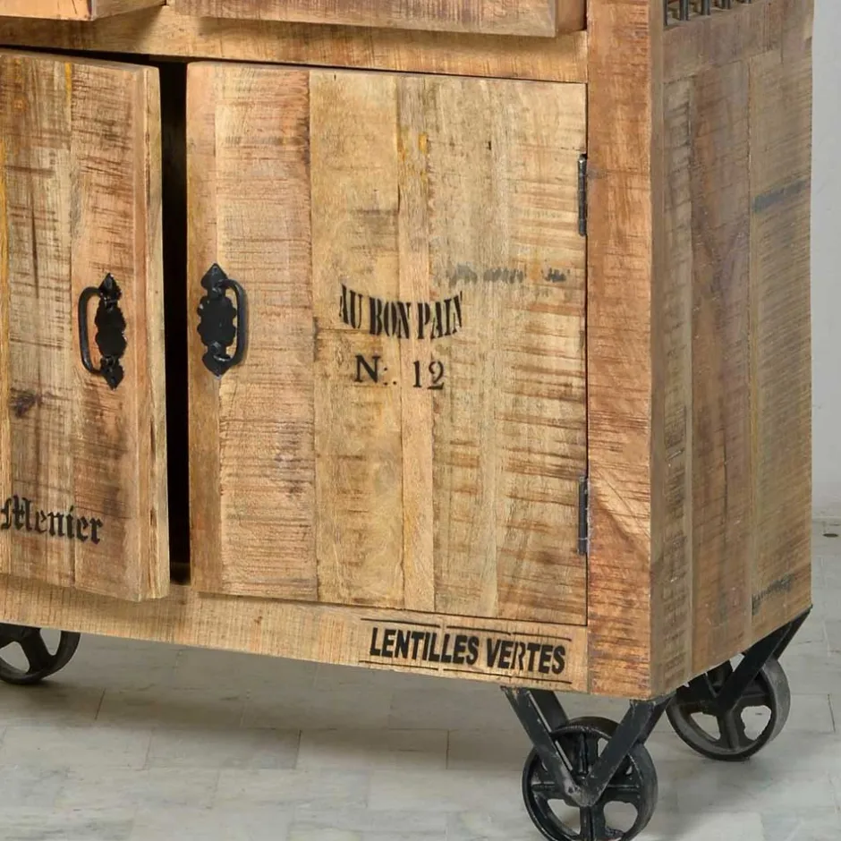Wohnen Holzvitrine Indri auf Rollen