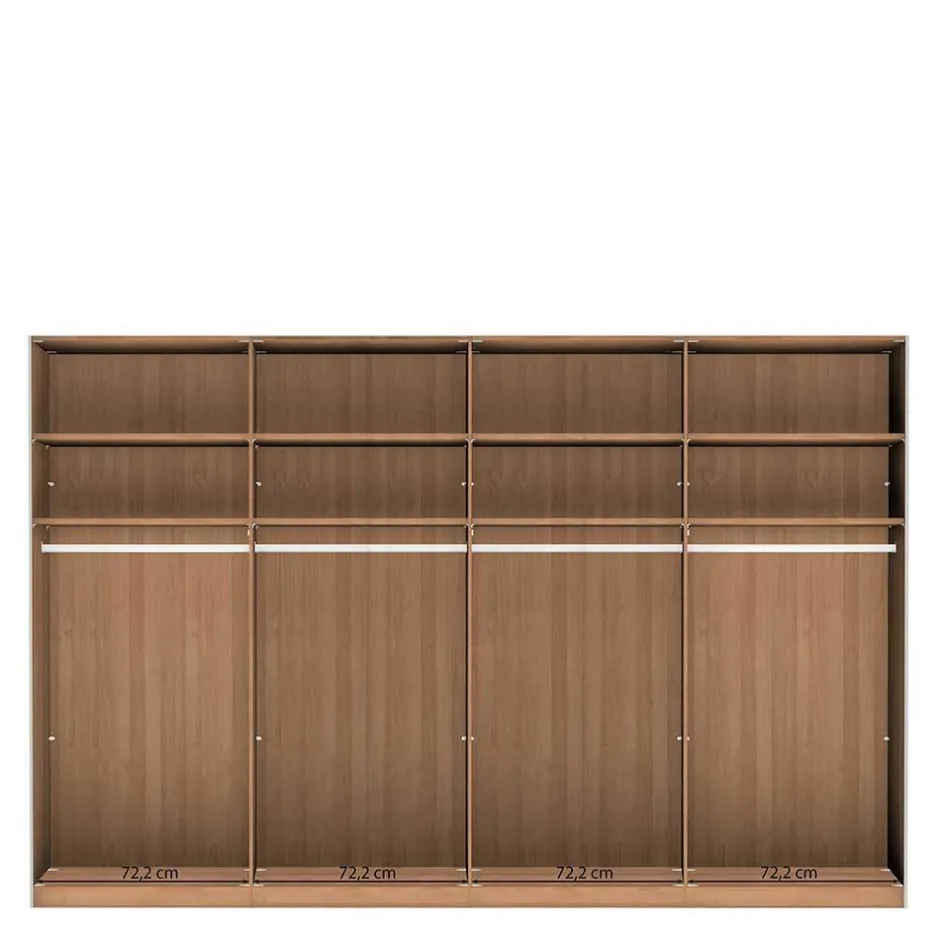 Im Inneren des Schranks finden sich vier Facheinheiten, jede ausgestattet mit zwei Einlegeböden und einer robusten Metall-Kleiderstange, die reichlich Stauraum für Ihre Garderobe bieten.