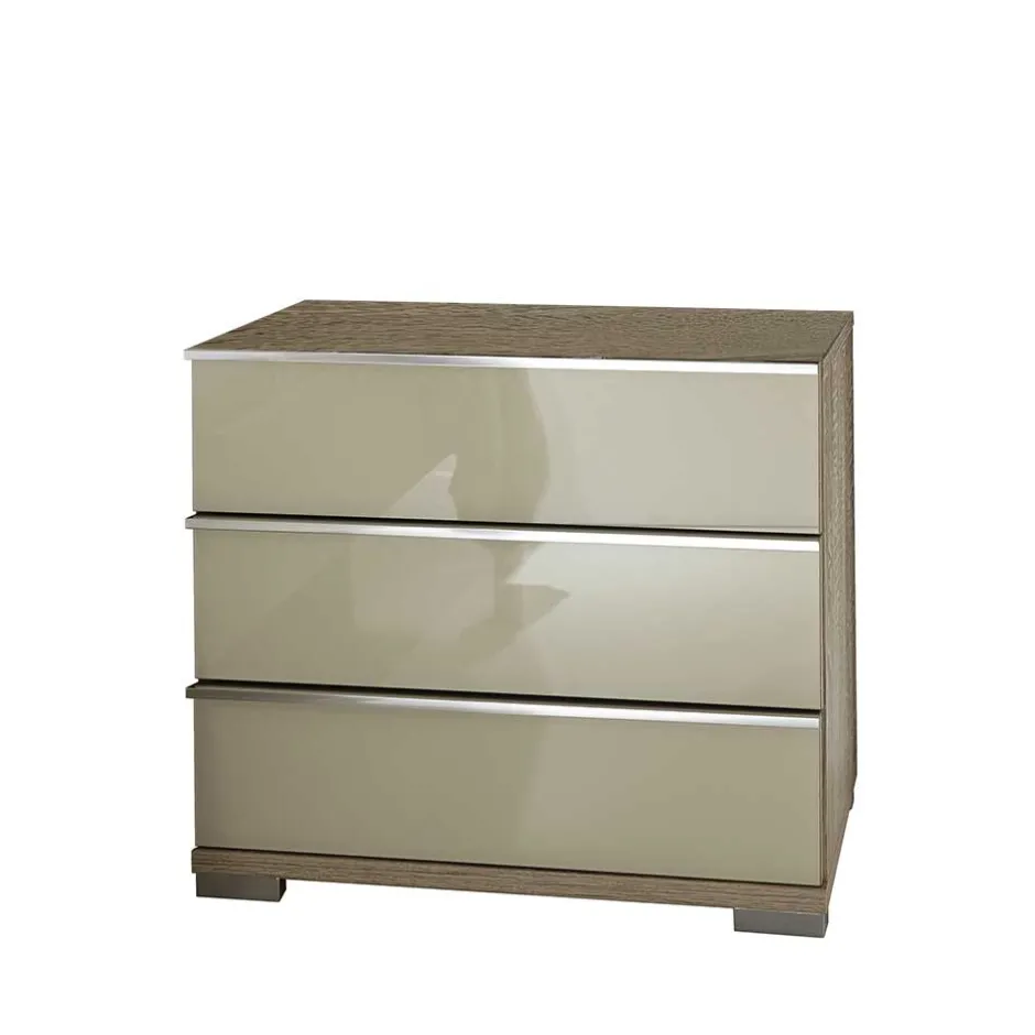 - Front der Schubkästen mit Glas beschichtet, Korpus mit Dekor Eiche sägerau foliert