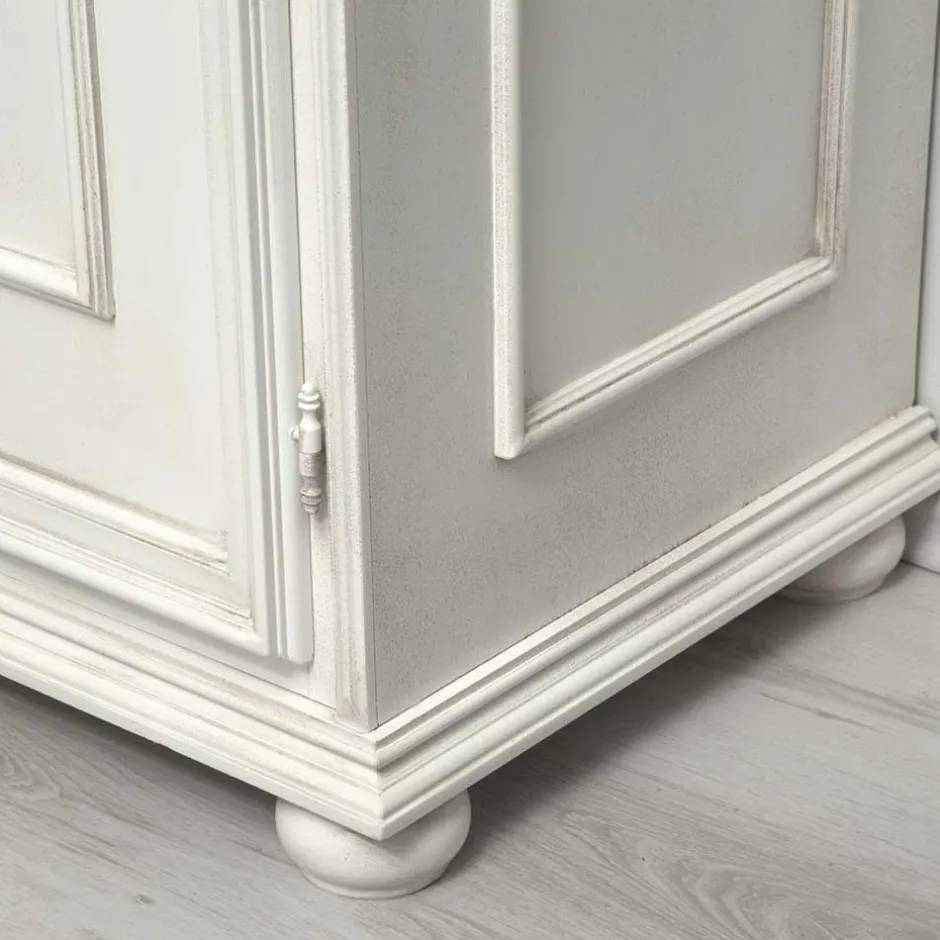 Die Kombi-Kommode „Vicina“ vereint stilvolle Ästhetik mit funktionaler Vielseitigkeit. Ihr antikweißer Look und die kunstvolle Verarbeitung verleihen jedem Wohnraum eine charmante, klassische Note.