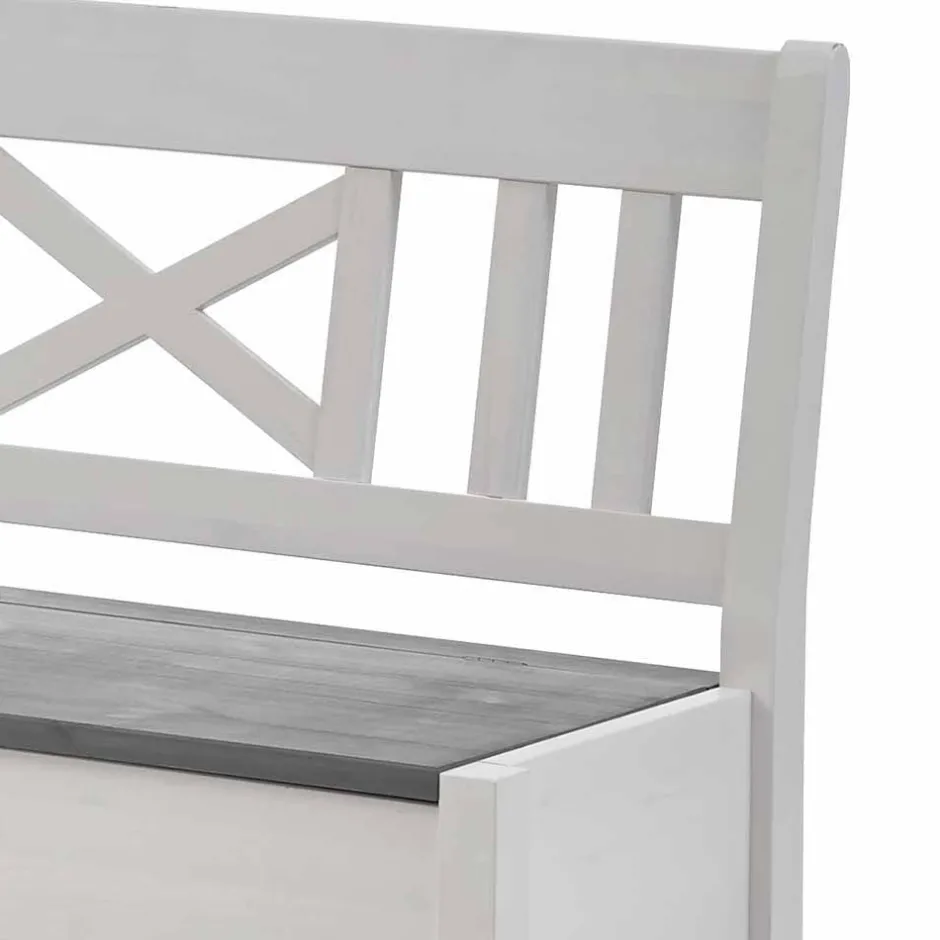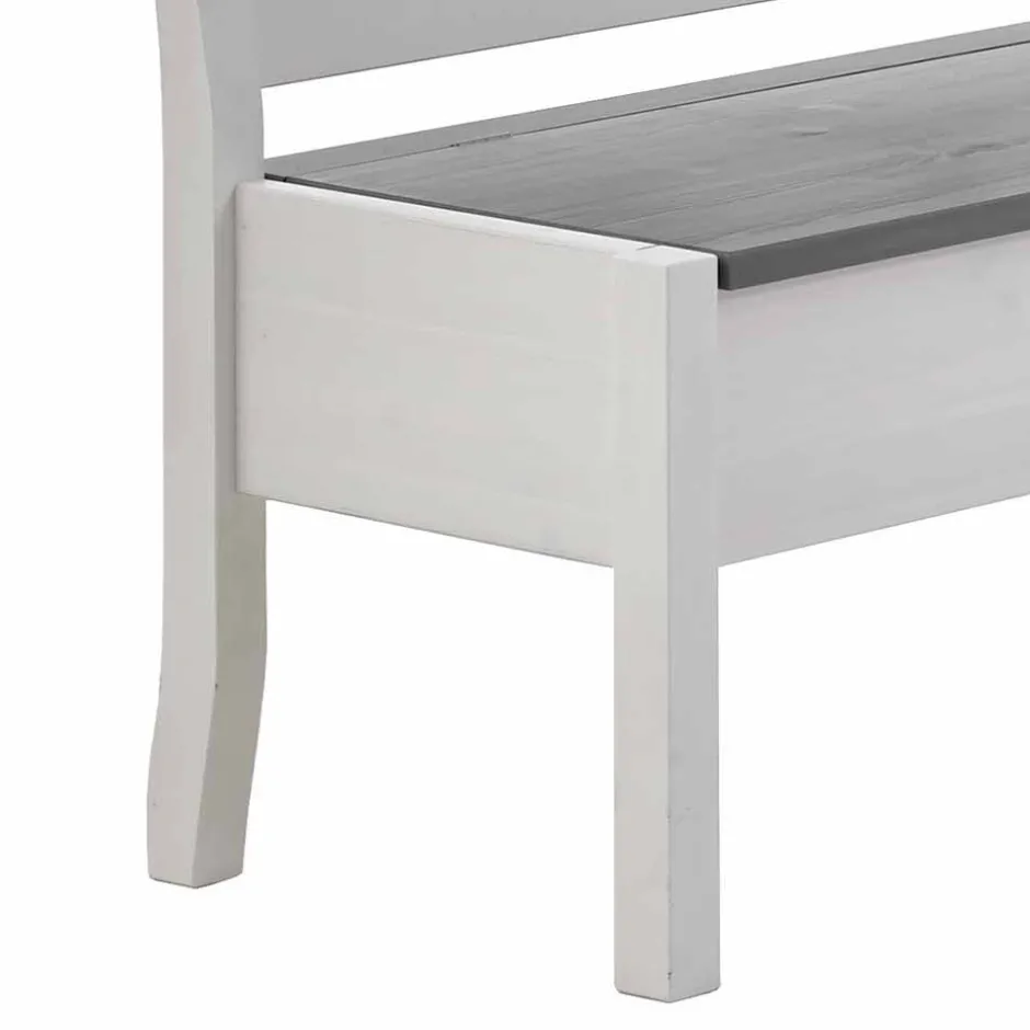 Die elegante Farbkombination aus weiß lackierten Flächen und einer grau gebeizten Sitzfläche mit durchscheinender Maserung sorgt für ein harmonisches und stilvolles Gesamtbild. Die dezente Farbgestaltung unterstreicht den Landhausstil und macht die Eckbank zu einem echten Blickfang in jedem Raum. Zudem trägt die Lackierung dazu bei, das Holz zu schützen und dessen natürliche Schönheit dauerhaft zu bewahren.