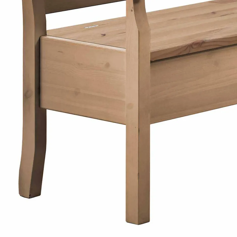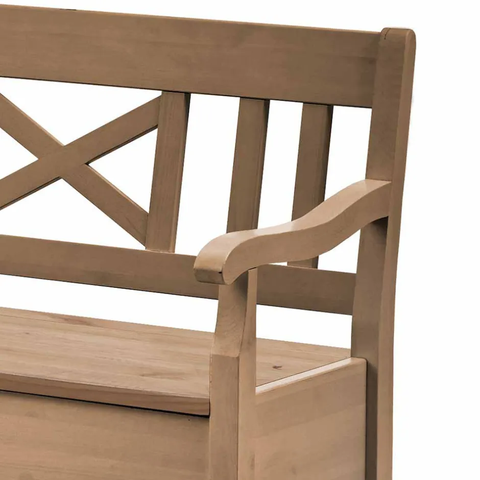 Unter der aufklappbaren Sitzfläche verbirgt sich eine geräumige Stauraumtruhe, die ideal für Kissen, Decken oder Tischwäsche geeignet ist. Nutzen Sie diesen zusätzlichen Stauraum, um Ordnung in Ihren Wohnbereich zu bringen und alles griffbereit zu haben. Die Stauraumtruhe ist nicht nur praktisch, sondern spart Platz und hilft, das Ambiente Ihres Raumes ruhig und aufgeräumt zu halten.