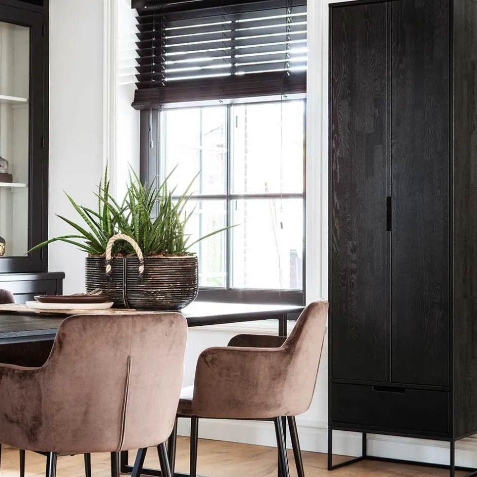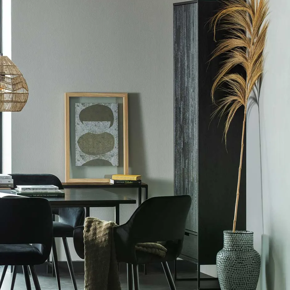 Eschenholz überzeugt durch seine hervorragende Stabilität und Widerstandsfähigkeit. Diese Eigenschaften machen es zu einer idealen Wahl für langlebige Möbel, an denen Sie lange Freude haben werden. Die Oberfläche des „Almery“ ist gebürstet und schwarz lackiert, wodurch die Holzstruktur elegant hervorgehoben wird und feine Risse sowie Astlöcher bewusst sichtbar bleiben. Dadurch entsteht ein authentischer, natürlicher Look, der jedes Möbelstück einzigartig macht.