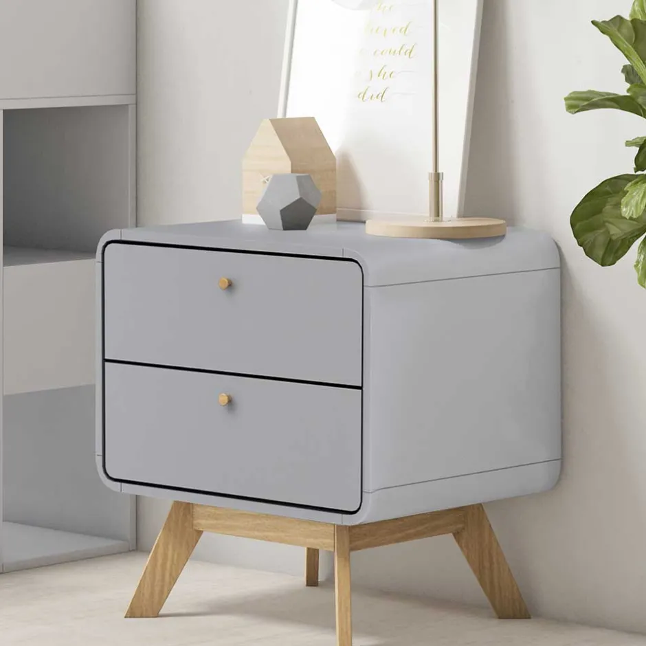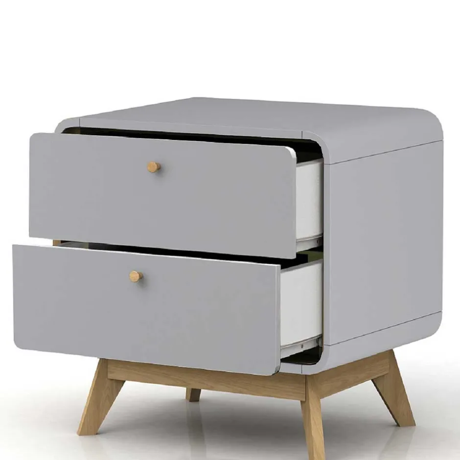 - Junge Nachtkommode in Grau und Eichefarben