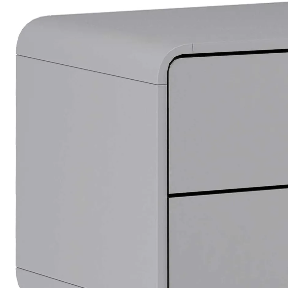 Die deutlich gerundeten Korpuskanten verleihen der „Wavan“ Nachtkommode einen sanften und einladenden Look, während das dekorative, leicht schräg gestellte Vierfußgestell aus MDF dem Möbelstück eine subtile Eleganz verleiht. Jedes Bein misst ca. 18×55 mm und trägt zur Stabilität und dem harmonischen Gesamtbild bei.
