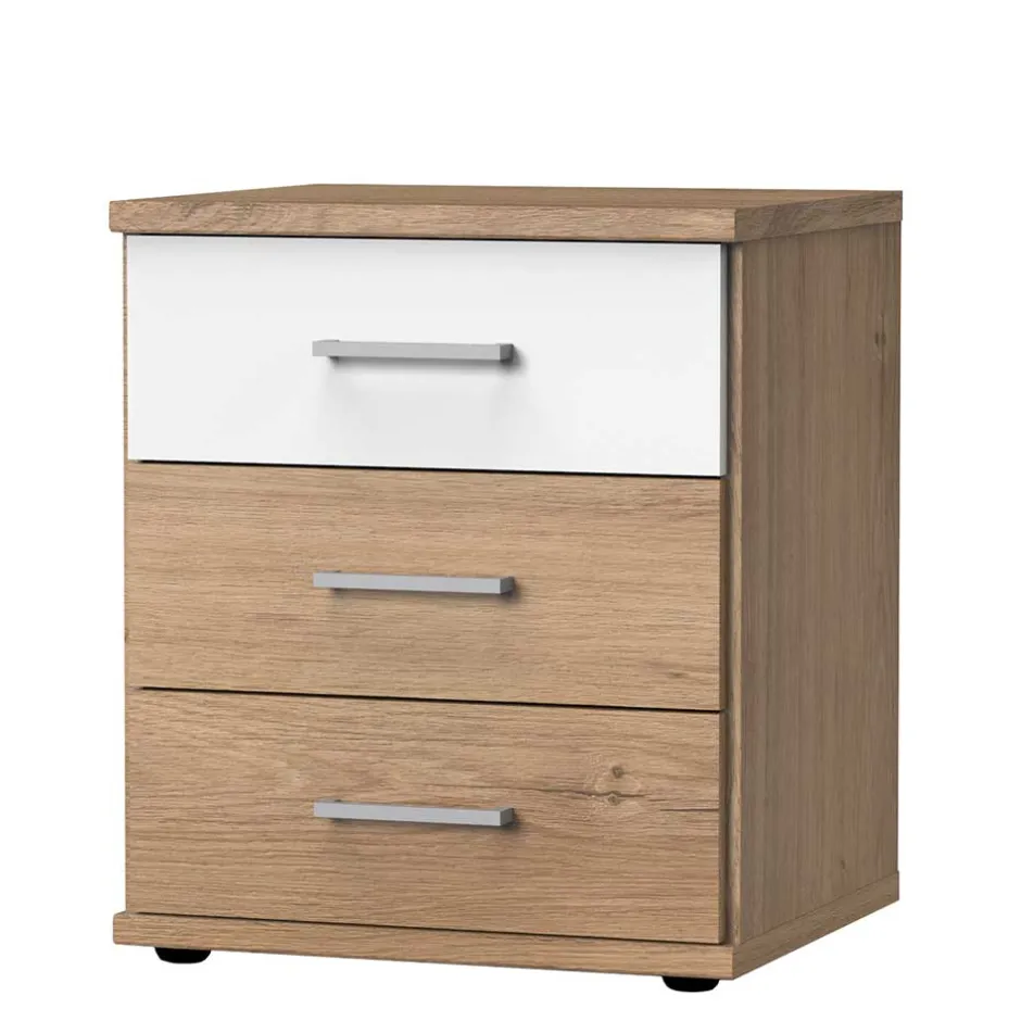 - Kompakte Nachtkommode in Eichefarben und Weiß