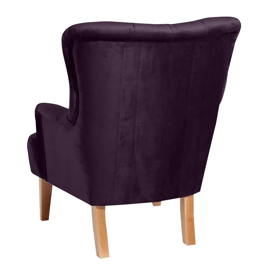 - Gemütlicher Sessel in Dunkellila und Buchefarben