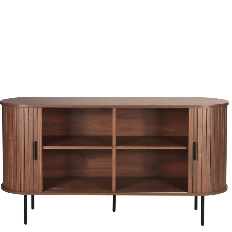 Mit einer Breite von 140 cm, einer Höhe von 76 cm und einer Tiefe von 40 cm bietet das Sideboard „Arura“ großzügigen Stauraum, ohne wuchtig zu wirken. Zwei stilvolle Schiebetüren in moderner Lamellenoptik verbergen den Innenraum elegant und sparen gleichzeitig Platz beim Öffnen. Dahinter verbergen sich zwei praktische Einlegeböden, die jeweils mit bis zu 5 kg belastet werden können – perfekt für Geschirr, Bücher oder Dekoartikel. Die Deckplatte selbst trägt mühelos bis zu 30 kg und eignet sich damit hervorragend für Vasen, Leuchten oder dekorative Lieblingsstücke.