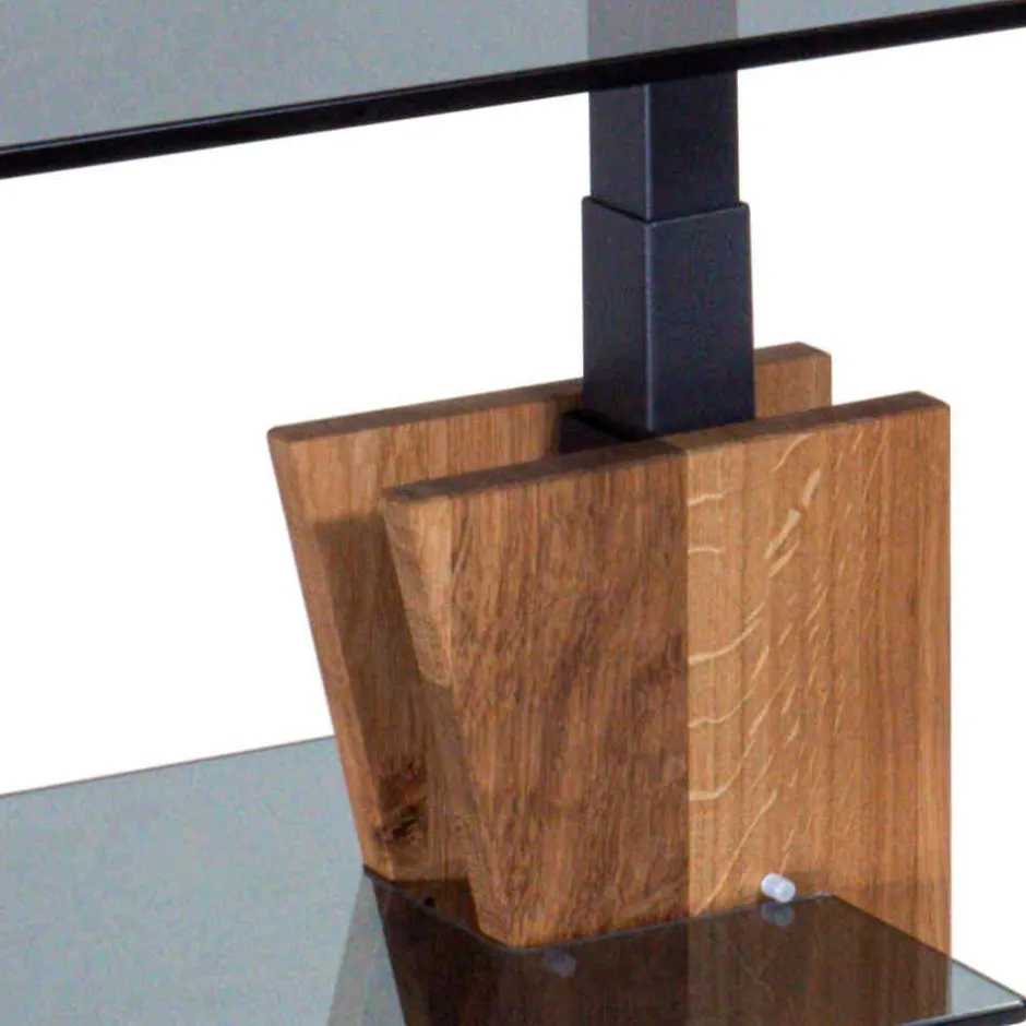 - Markant ist das Säulengestell aus Wildeiche Massivholz mit Bodenplatte in Anthrazit