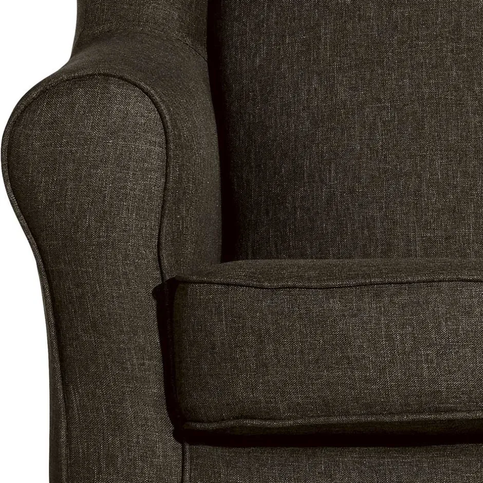 Das stabile Grundgestell aus Massivholz und Holzwerkstoffen sorgt für zuverlässige Standfestigkeit bei gleichzeitigem Sitzgenuss bis zu 120 kg. Der aufwendig gearbeitete Bezug mit umlaufenden Kedernähten sowie der echt bezogene Rücken unterstreichen den hohen Qualitätsanspruch dieses Möbelstücks. Schön geschwungene Armlehnen und gemütliche, seitliche Ohren laden dazu ein, sich einzukuscheln und den Alltag draußen zu lassen.