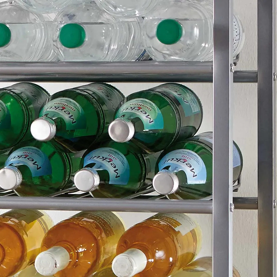 - Sechs Ablagen für 54 Flaschen a 1,5 l