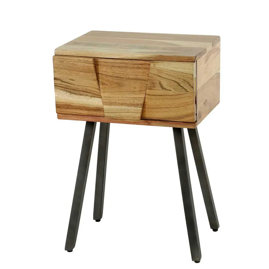 - Smarter Nachttisch in Akaziefarben und Dunkelgrau