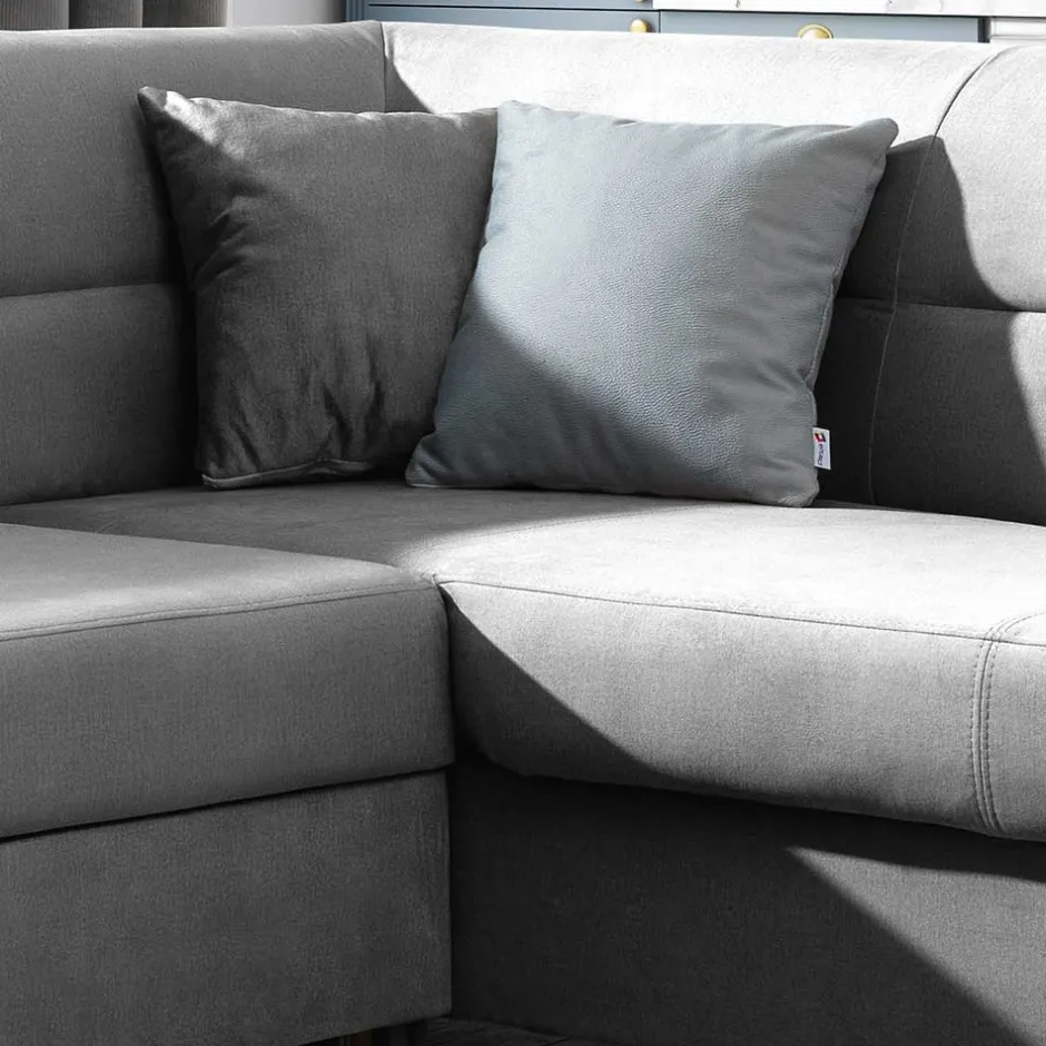 Wohnen Samt Eckcouch in Grau mit Bettfunktion – Elhan