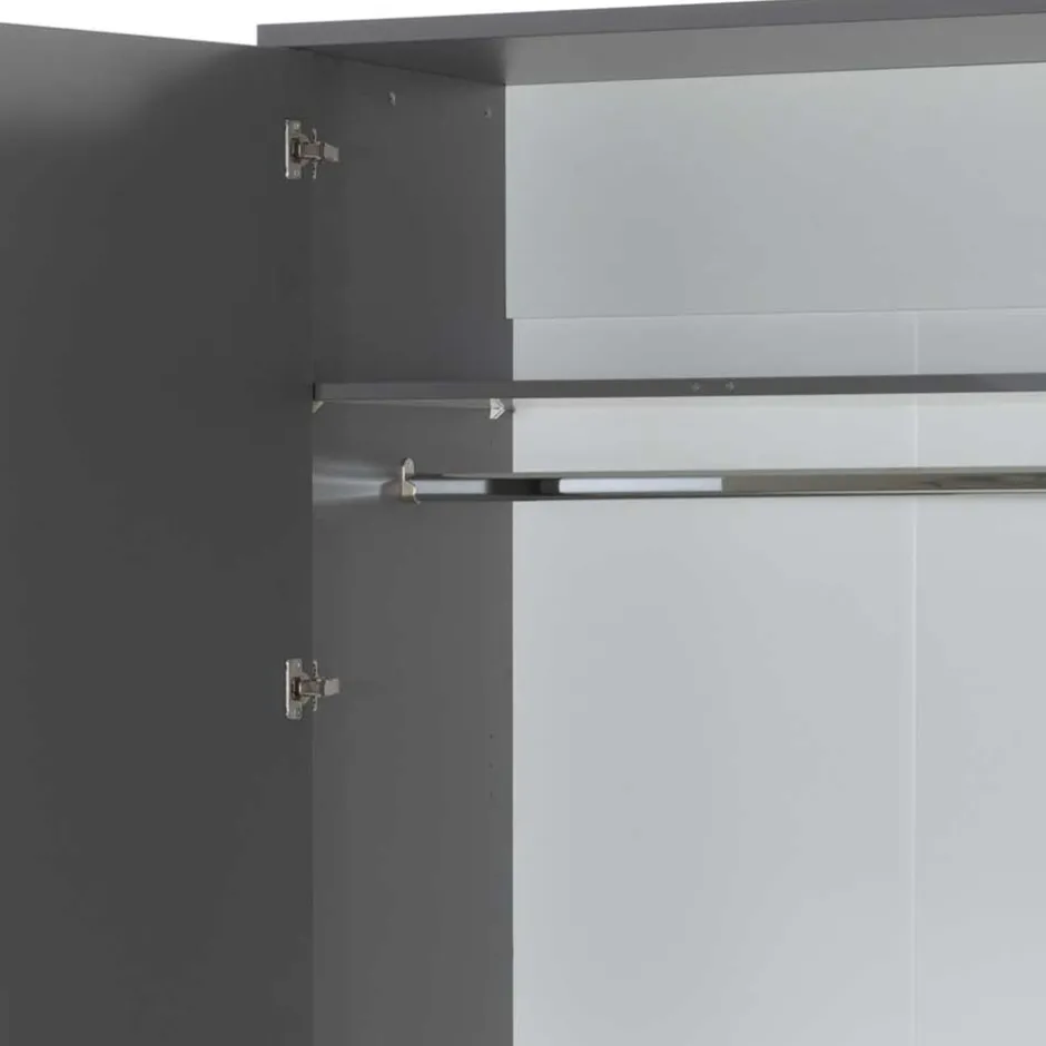 Der Kleiderschrank verfügt über eine markante Geradlinigkeit und klare Formsprache, die Ihrem Raum einen charmanten skandinavischen Charakter verleihen. Das attraktive Farbspiel aus Anthrazit mit Akzenten in Natur Buche harmoniert wunderbar mit verschiedenen Einrichtungsstilen und wird sicherlich zum Blickfang in Ihrem Schlafzimmer.