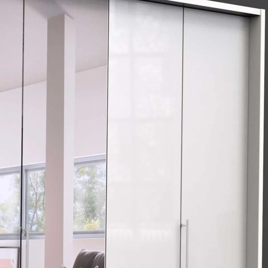 Hergestellt in Deutschland aus wertiger Spanplatte, besticht der Kleiderschrank „Dolienca“ durch seine langlebige Konstruktion und sein modernes, zeitloses Erscheinungsbild. Die Front ist mit einer weißen Glasbeschichtung versehen, während der Korpus in stilvollem Weiß foliert ist. Diese Kombination verleiht dem Schrank einen edlen und eleganten Look, der sich nahtlos in verschiedene Einrichtungsstile integrieren lässt.