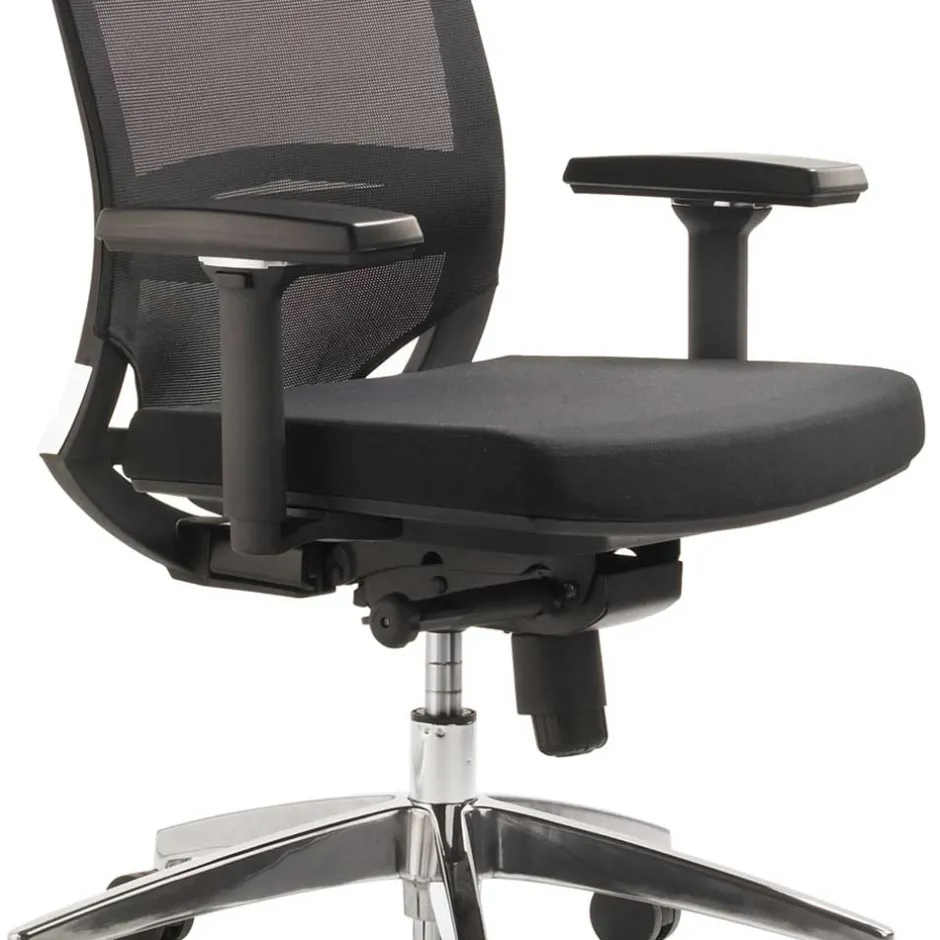 - Gepolsterte Sitzfläche, Netzrücken und ein Fußkreuz aus Aluminium
