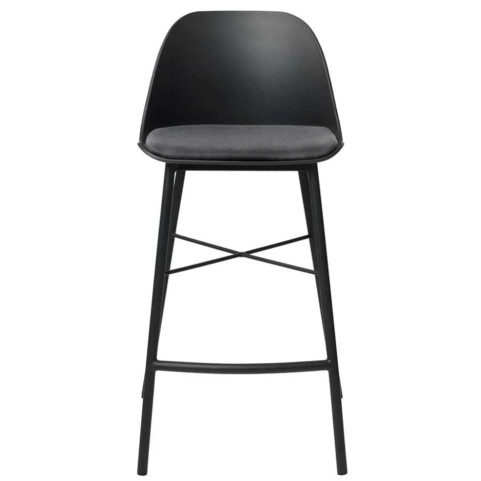 Das mattschwarz pulverbeschichtete Metallgestell unterstreicht den modernen Look des Hockers und verleiht ihm zugleich Stabilität und Standfestigkeit. Die solide Fußstütze sorgt für zusätzlichen Komfort und eine entspannte Sitzhaltung, während Querverstrebungen die Konstruktion verstärken – für eine lange Lebensdauer, auf die Sie sich verlassen können. Bodenschoner sind selbstverständlich inklusive und schützen Ihren Bodenbelag zuverlässig vor Kratzern.