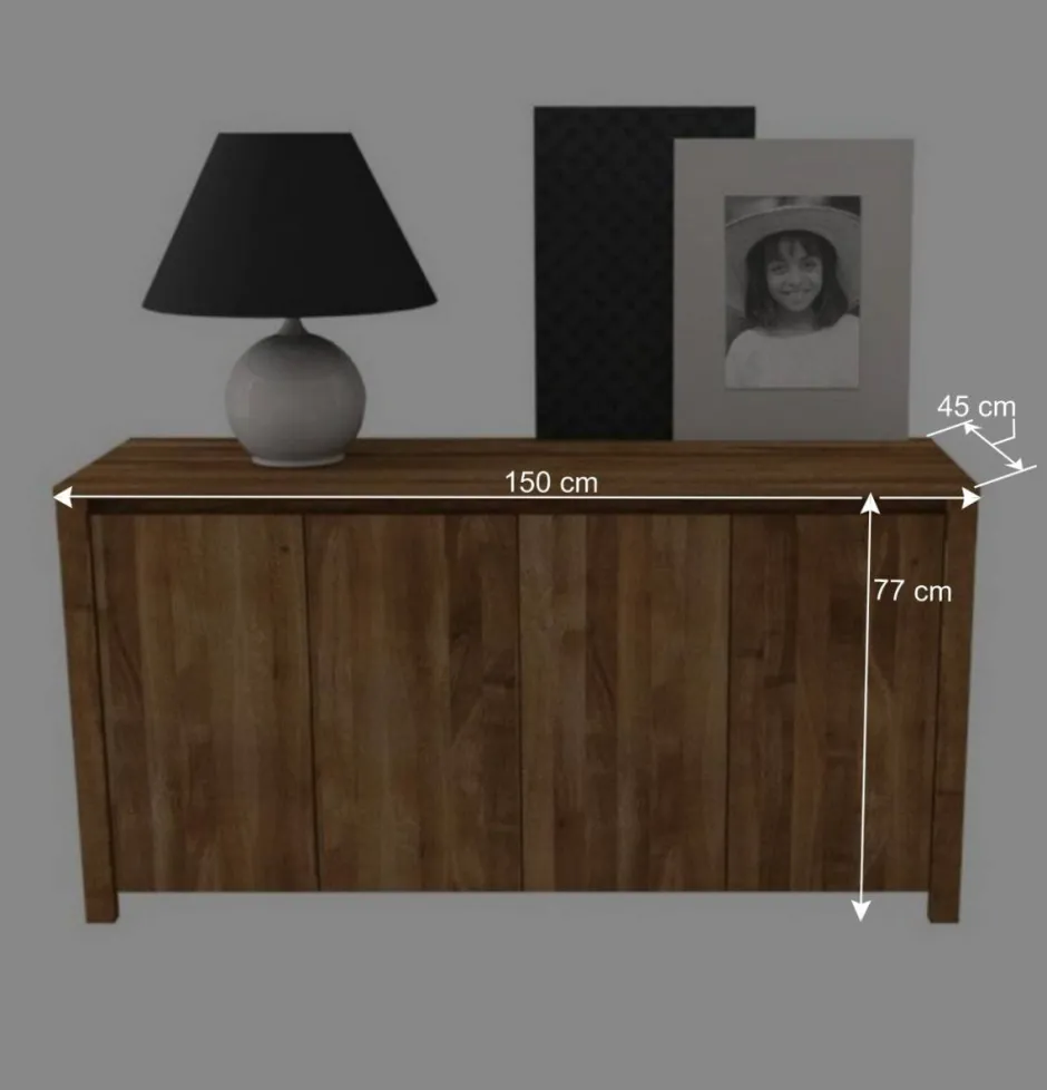 Mit einer Breite von 150 cm, einer Höhe von 77 cm und einer Tiefe von 45 cm bietet das Sideboard „Nadalia“ ausreichend Stauraum für Ihre persönlichen Gegenstände. Hinter den beiden geräuscharmen Soft Close Doppeltüren verbergen sich Einlegeböden, die für eine optimale Organisation sorgen. Die grifflosen Türen mit Griffmulden sind nicht nur praktisch, sondern verleihen dem Sideboard auch eine moderne Note.