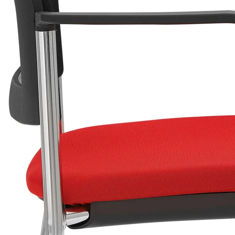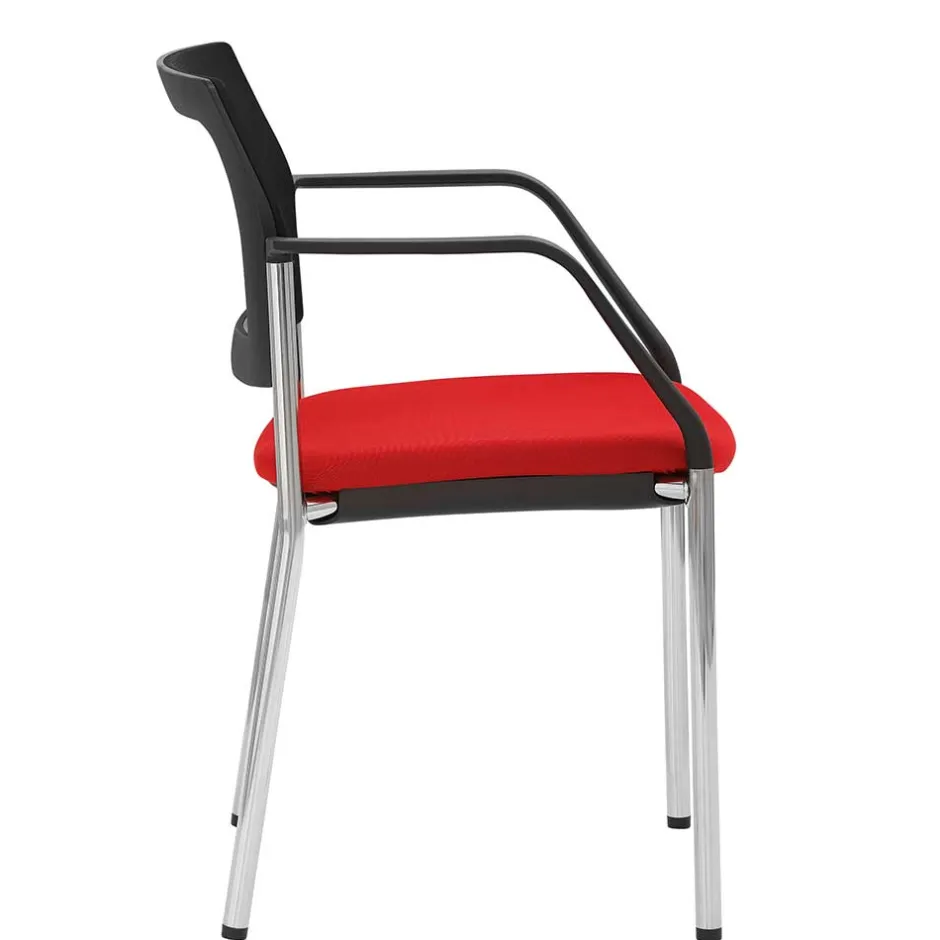 - Solider Stapelstuhl in Schwarz, Rot und Chromfarben