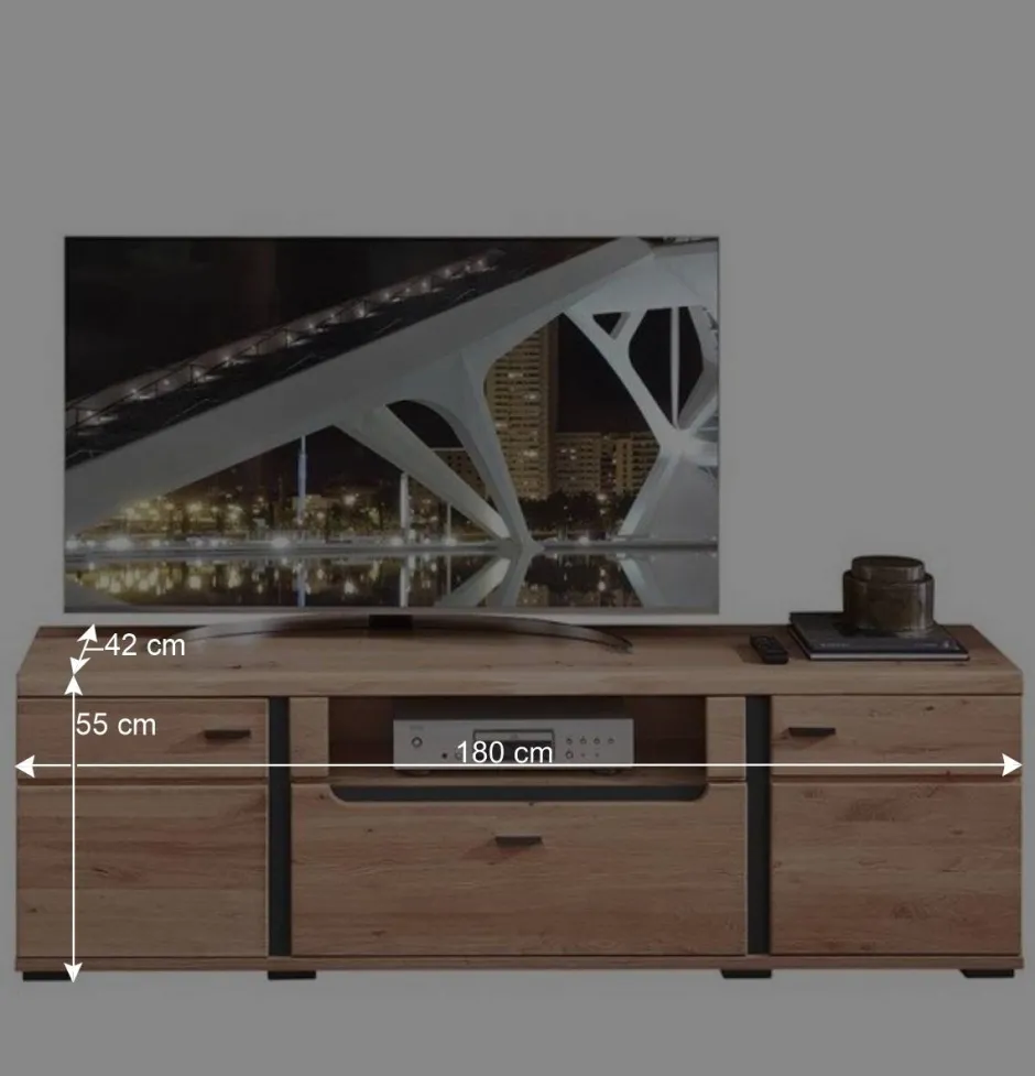 - TV-Board – Bietet ausreichend Platz für Ihren Fernseher und zusätzlichen Stauraum für Unterhaltungselektronik.
