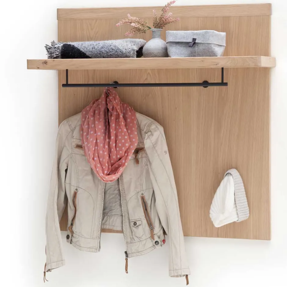 Eingangsbereiche sind das Aushängeschild eines jeden Zuhauses, und die Hängegarderobe „Arkadiuz“ verkörpert diesen ersten Eindruck mit Stil und Eleganz. Ihr modernes Design fügt sich nahtlos in jede Raumgestaltung ein. Die Kombination aus massiver Balkeneiche und hochwertig furnierten Spanplatten strahlt Wärme und Natürlichkeit aus, ideal für ein einladendes Ambiente direkt beim Betreten des Hauses.