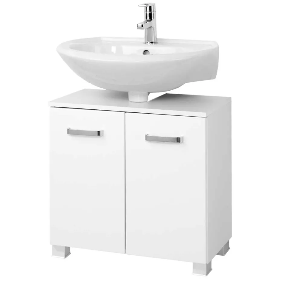 Modernes Design steht für klare Linien, dezente Farbwelten und funktionale Formen – genau das verkörpert der „Sagunis“ Waschbeckenschrank. In elegantem Weiß gehalten, fügt er sich harmonisch in verschiedenste Badezimmerstile ein und sorgt gleichzeitig für eine frische, aufgeräumte Atmosphäre. Chromglänzende Metallgriffe setzen dezente, edle Akzente und verleihen dem Schrank einen Hauch von Luxus.
