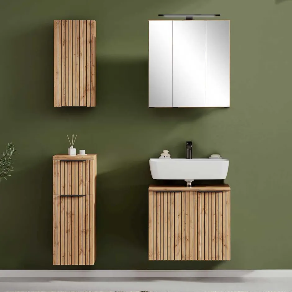 Gefertigt aus hochwertiger, melaminbeschichteter Spanplatte, überzeugt der Unterschrank nicht nur optisch, sondern auch im Alltag. Die pflegeleichte Oberfläche in Holzoptik sieht edel aus und lässt sich mühelos reinigen. Die Melaminbeschichtung macht das Möbelstück widerstandsfähig gegen Feuchtigkeit und Kratzer – perfekt für den täglichen Einsatz im Badezimmer. Top-Materialqualität und eine exzellente Verarbeitung garantieren Ihnen lange Freude an diesem Produkt.
