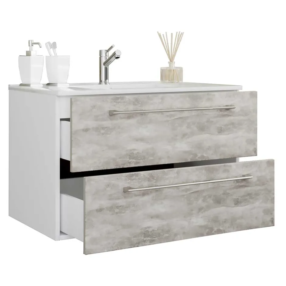 - Trendstarker Waschtisch in Weiß und Beton Optik Grau