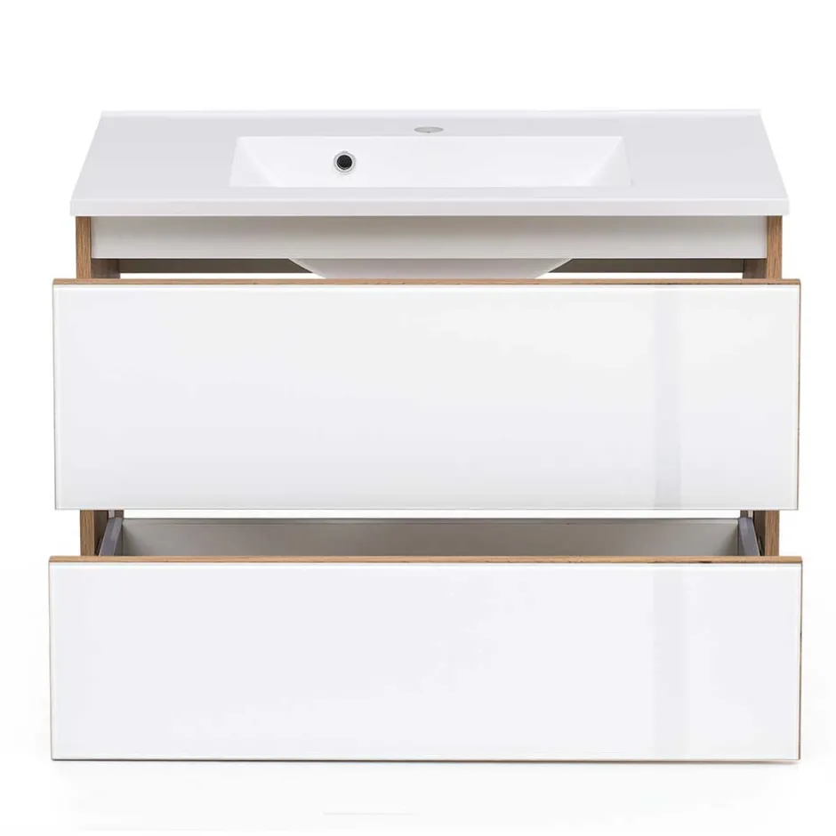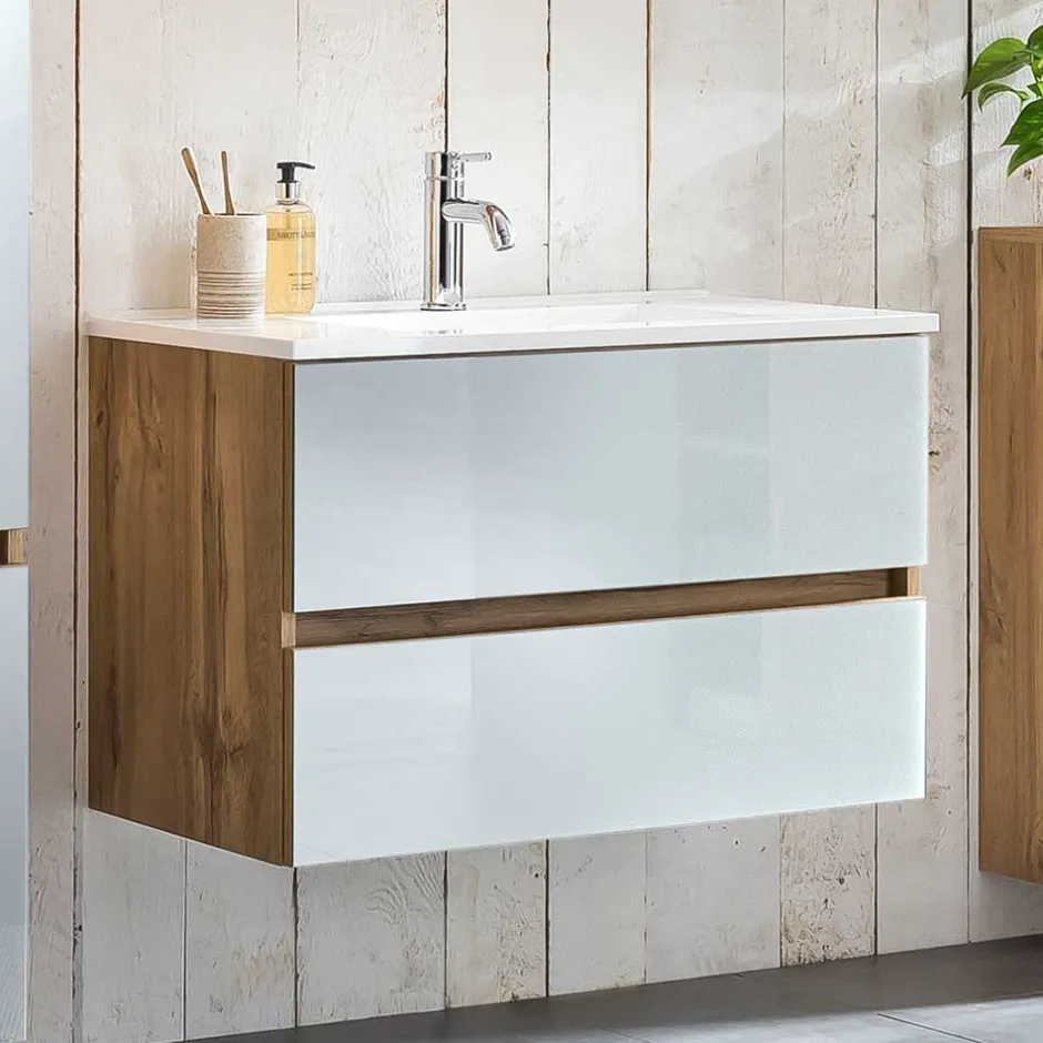 Wohnen Waschtisch Konsole in Weiß & Wildeiche - Vrendina