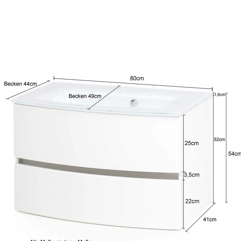 Mit einer Breite von 80 cm, einer Höhe von 53 cm und einer Tiefe von 49 cm passt der Waschtisch „Vandija“ perfekt auch in kleinere Bäder, ohne auf Stauraum oder Stil zu verzichten. Die optimal abgestimmten Proportionen sorgen für ein harmonisches Erscheinungsbild und bieten zugleich genügend Platz für Ihre Badutensilien.