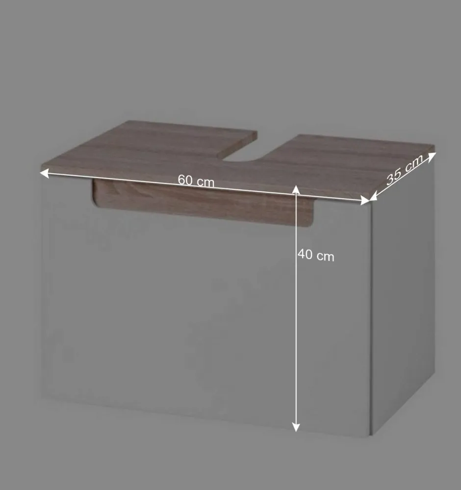 Damit sich Tymos perfekt unter Ihrem Waschbecken einfügt, verfügt die Deckplatte über einen exakt gearbeiteten Siphonausschnitt (Maße ca. 8,1 x 19,5 cm). So lässt sich der Schrank problemlos unter Ihrem Waschbecken montieren, ohne dass zusätzliche Anpassungen nötig sind. Das Waschbecken selbst ist nicht im Lieferumfang enthalten – ein bewusster Vorteil, denn so haben Sie die Freiheit, Ihr bevorzugtes Modell passend zu Ihrem Stil und Ihren räumlichen Gegebenheiten auszuwählen.