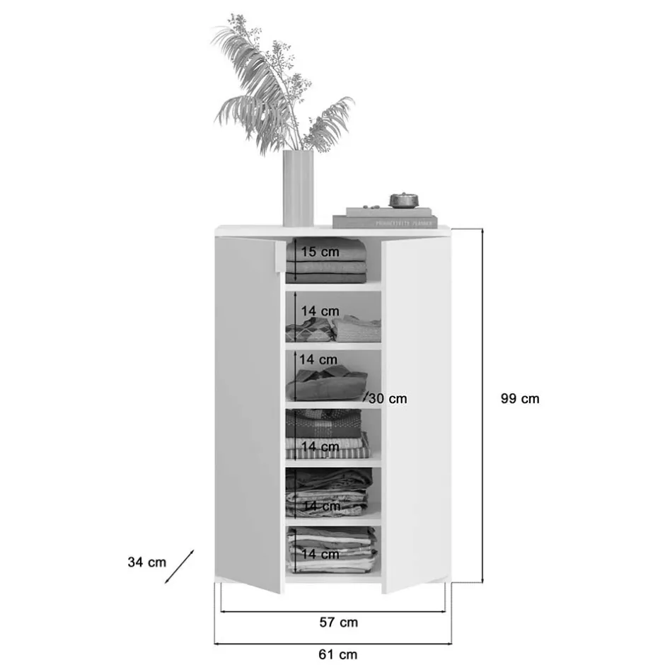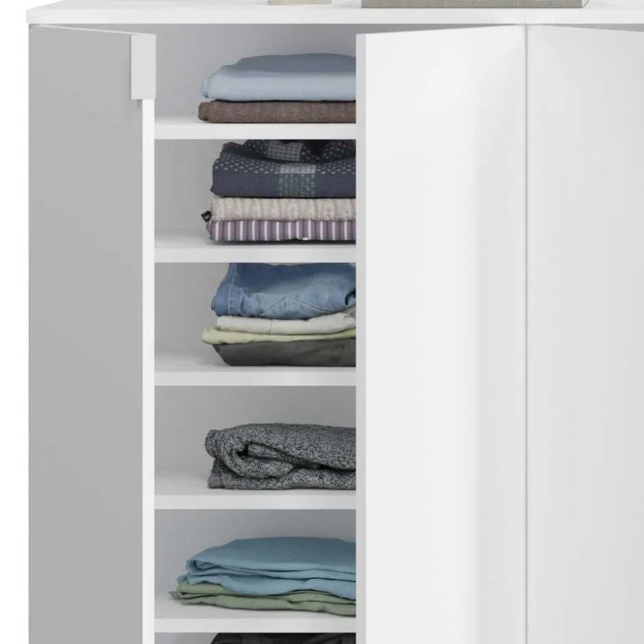 - Zwei 2-türige Schränke (jeweils 61x99x34 cm) mit jeweils fünf Einlegeböden bieten ausreichend Platz für Kleidung, Bücher oder Haushaltsgegenstände. Die Einlegeböden sind teils herausnehmbar, sodass Sie die Inneneinteilung nach Ihren Bedürfnissen anpassen können.