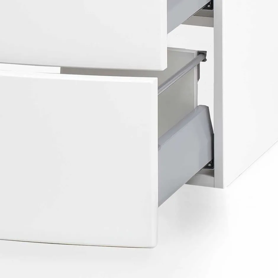- Zwei Schubkästen mit Metall-Vollauszug und Soft Close-Funktion, unterer Auszug mit Reling