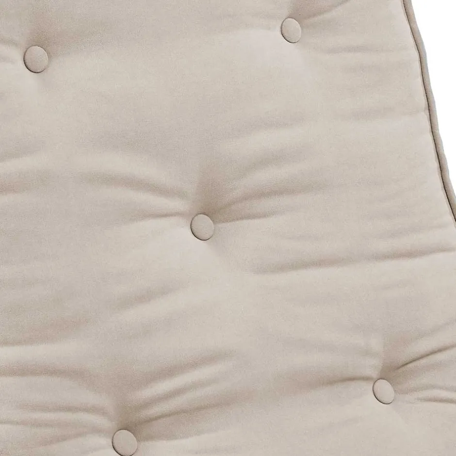 Der Bezug aus 100 % Polyester in Cremeweiß mit einer feinen Struktur verleiht dem Schlafsessel eine edle Optik. Dekorative Zierknöpfe ergänzen das ästhetische Erscheinungsbild und unterstreichen die Liebe zum Detail, die in jedem Aspekt dieses Möbelstücks steckt.
