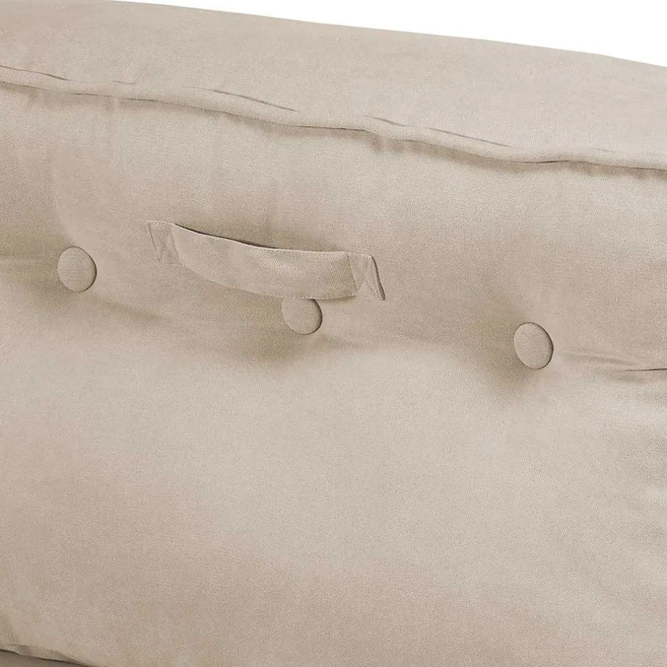 - Angenehmer Webstoffbezug (100 % Polyester) mit feiner Struktur und dekorativen Zierknöpfen