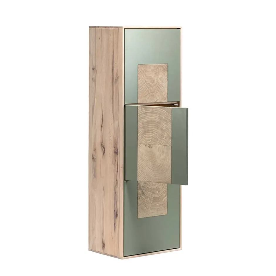 Ein weiteres Highlight dieses Möbelstücks sind die echten Hirnholz-Applikationen, die die Türfronten mittig veredeln. Diese Applikationen sind handverlesen und verleihen dem Schrank eine einzigartige und natürliche Schönheit. Jede Applikation erzählt ihre eigene Geschichte und macht Ihren Hängeschrank „Ajevos“ zu einem einzigartigen Kunstwerk.