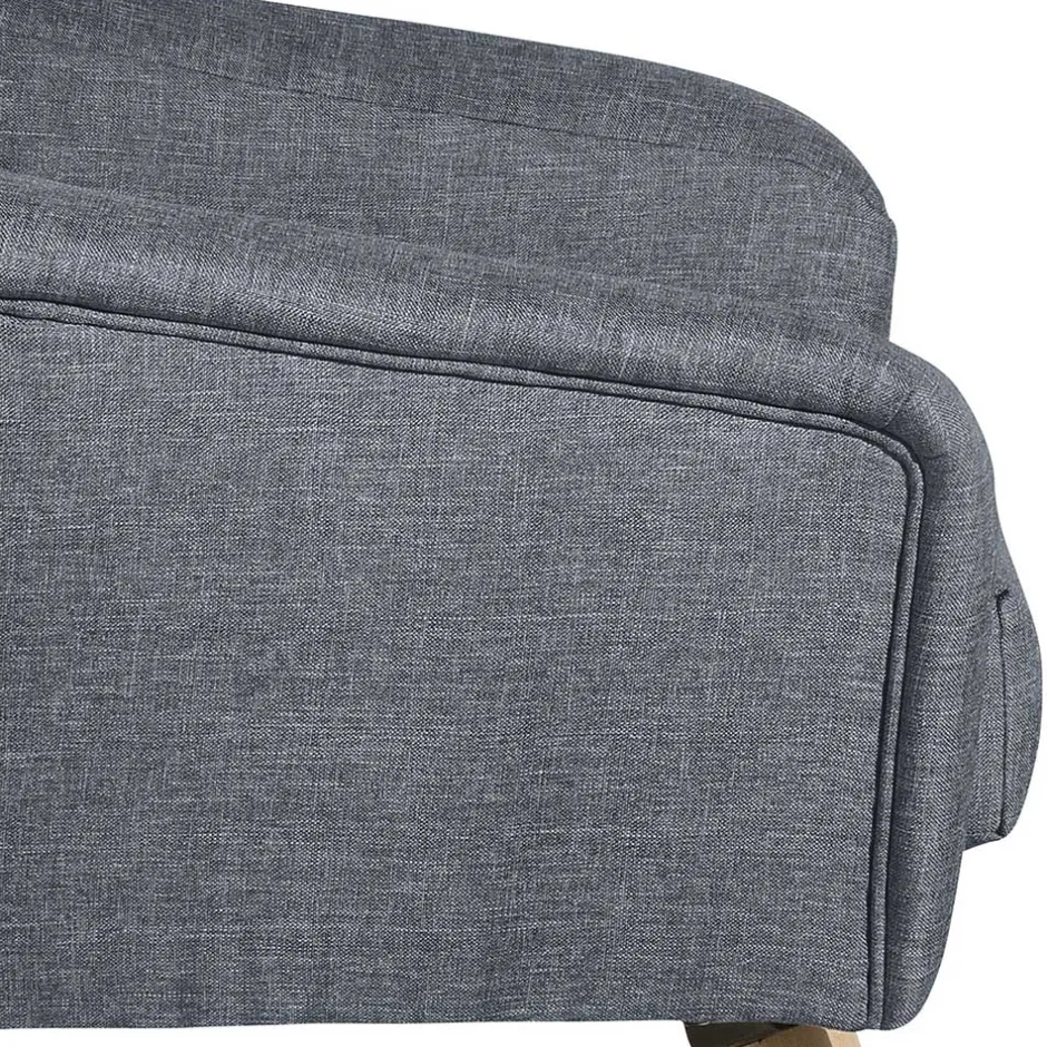 Das tragende Untergestell aus Holzwerkstoff und Holz bietet solide Stabilität, während die Gurtfederung und die bequeme Schaumstoffpolsterung für einen unvergleichlichen Sitzkomfort sorgen. Der robuste Bezug aus 100 % Polyester Flachgewebe in einem charmanten Blauton vereint Strapazierfähigkeit mit ansprechendem Design.