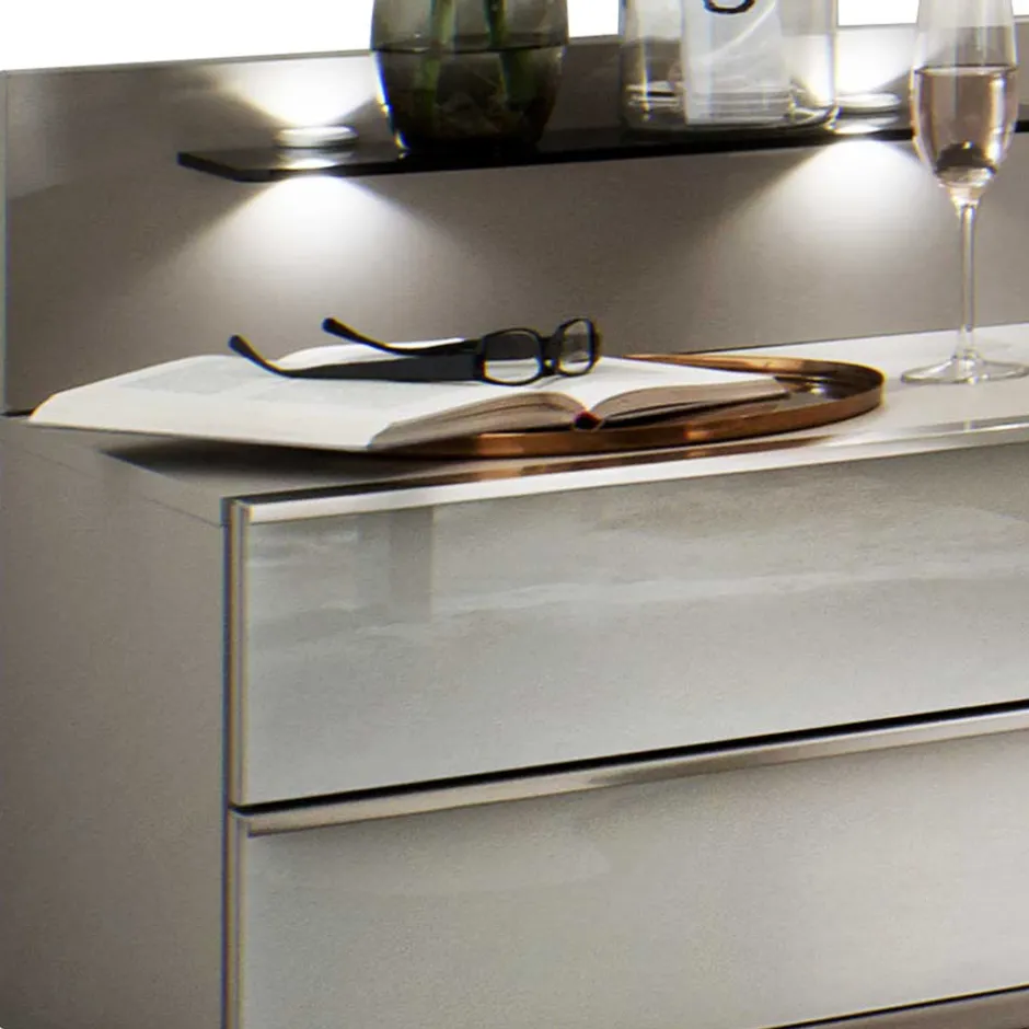 Ein herausragendes Feature der „Tumiva“ Nachtkonsole ist das innovative LED-Touch-Beleuchtungssystem am Rauchglasboden des aufgesetzten Wandpaneels. Mit nur einer Berührung können Sie eine sanfte, einladende Beleuchtung aktivieren, die eine entspannende Atmosphäre schafft, ideal zum Lesen oder Entspannen vor dem Schlafengehen.