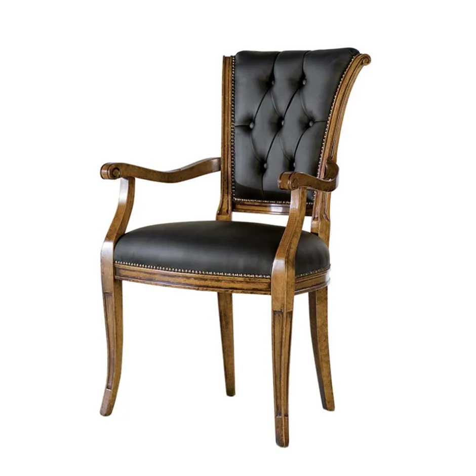 Der Stuhl „Naresh“ ist mit einem strapazierfähigen Bezug aus glattem Echtleder versehen, der nicht nur robust und pflegeleicht ist, sondern mit seinen eleganten Steppungen, Zierknöpfen und Polsternägeln auch optisch besticht. Echtleder ist bekannt für seine Langlebigkeit und verbessert mit der Zeit seine Optik und Haptik, was „Naresh“ zu einer Investition macht, die ihre Wertigkeit über Jahre hinweg behält.